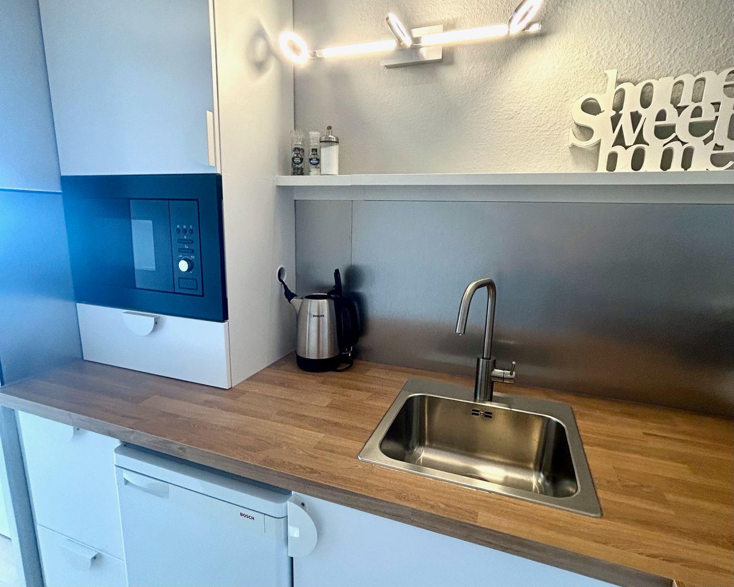 Dieses Apartment verfügt über kostenfreies W-LAN, ein Schlaf-/ Wohnzimmer, eine nagelneue Küche mit einem Kühl-/ Gefrierschrank, einem Backofen, 2 Platten-Cerankochfeld, einen Flachbild-TV, einen Essbereich mit 4 Stühlen und einem Bad mit einer Dusche. Handtücher und Bettwäsche können dazu reserviert werden. Die Nebenkosten sind im Reisepreis bereits enthalten.