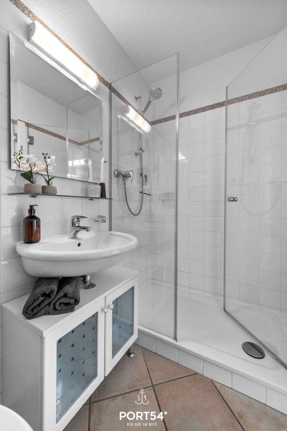 Ein modernes Badezimmer mit Dusche sowie weiteren Annehmlichkeiten wie Haartrockner und Waschbecken machen Ihren Aufenthalt besonders komfortabel. Darüber hinaus müssen Sie sich keine Sorgen um die Sicherheit machen: Die Wohnung verfügt über Rauchmelder und ist als Nichtraucherunterkunft klassifiziert.
