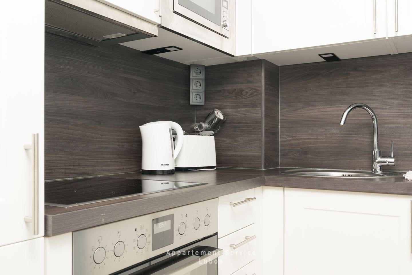 Die kleine, gut ausgestattete Küche mit Essplatz lädt dazu ein, nach Herzenslust zu kochen und zu genießen. Der Flur mit Garderobe sorgt dafür, dass alles seinen Platz hat und das moderne Bad mit Dusche und WC macht deinen Aufenthalt rundum komfortabel.