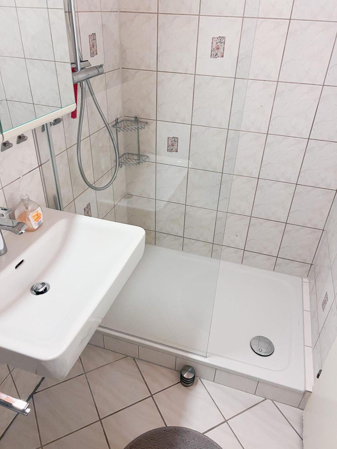 Die voll ausgestattete Küche ist offen gestaltet und bietet alles, was du brauchst: Herd, Backofen, Geschirrspüler, Toaster, Wasserkocher und sogar einen Eierkocher. Hier kannst du dir frische Zutaten vom nahegelegenen Fischkutter zubereiten und den Geschmack der Ostsee genießen. Das moderne Duschbad mit Regendusche-Effekt macht den Start in den Tag zu einem kleinen Wellness-Moment.
