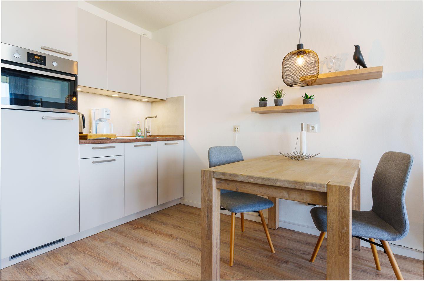 Die Wohnung bietet dir alles, was du brauchst, um dich rundum wohlzufühlen. Das große Doppelbett und ein Schlafsofa sorgen für gemütliche Nächte und ausreichend Platz. Die voll ausgestattete Küchenzeile und der Essbereich laden dazu ein, in entspannter Atmosphäre zu kochen und gemeinsam zu genießen. Das moderne Bad mit Dusche macht deinen Start in den Tag besonders angenehm.