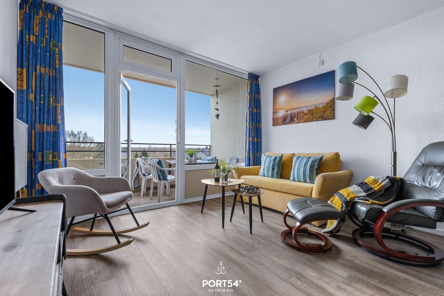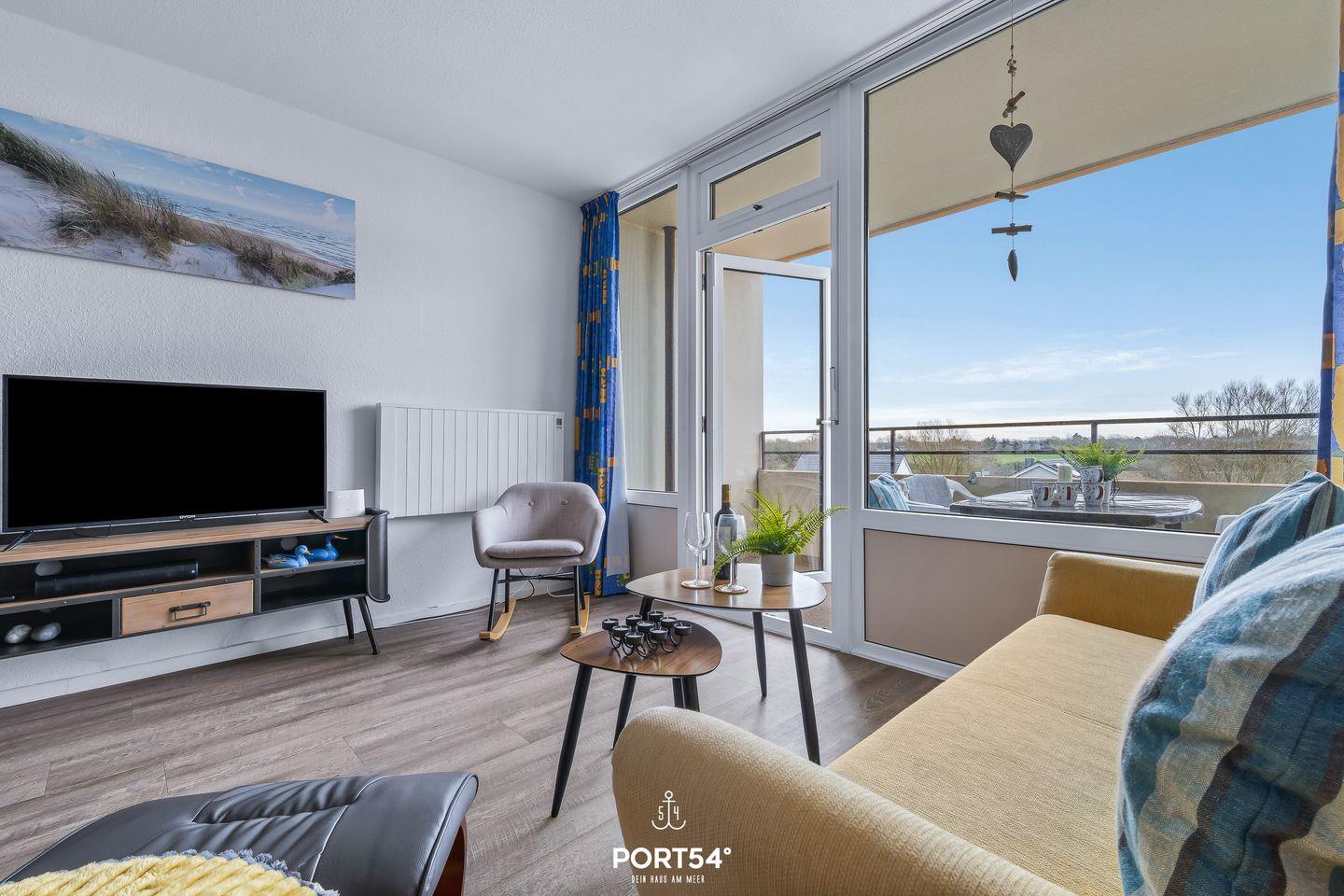 Gemütlichkeit und Komfort erwarten dich im Inneren der Wohnung. Neben einem hellen und freundlich gestalteten Wohnzimmer, das mit einem Sofa und einem Sessel ausgestattet ist, findest du hier auch einen Essbereich, der Platz für gesellige Abende mit Familie und Freunden bietet. Das Schlafzimmer ist mit 4 Schlafplätzen ausgestattet, wovon es sich bei einem Bett um ein Etagenbett handelt. Das Etagenbett ist von einem Raumtrenner von den anderen Schlafplätzen (zwei Einzelbetten, die zu einem großen Doppelbett zusammengeschoben werden können) getrennt. Für deine kulinarischen Bedürfnisse steht dir eine offene, gut ausgestattete Küche zur Verfügung, die mit einem 2-Platten-Herd, Kühlschrank, Geschirr und Besteck sowie Küchenutensilien ausgestattet ist. Genieße deine Mahlzeiten auf einem der beiden Balkone, wo du frische Meeresluft tanken kannst.