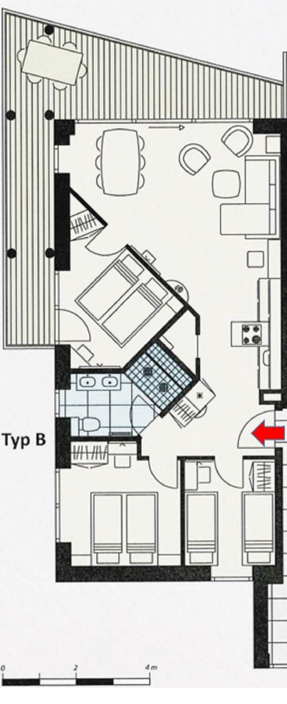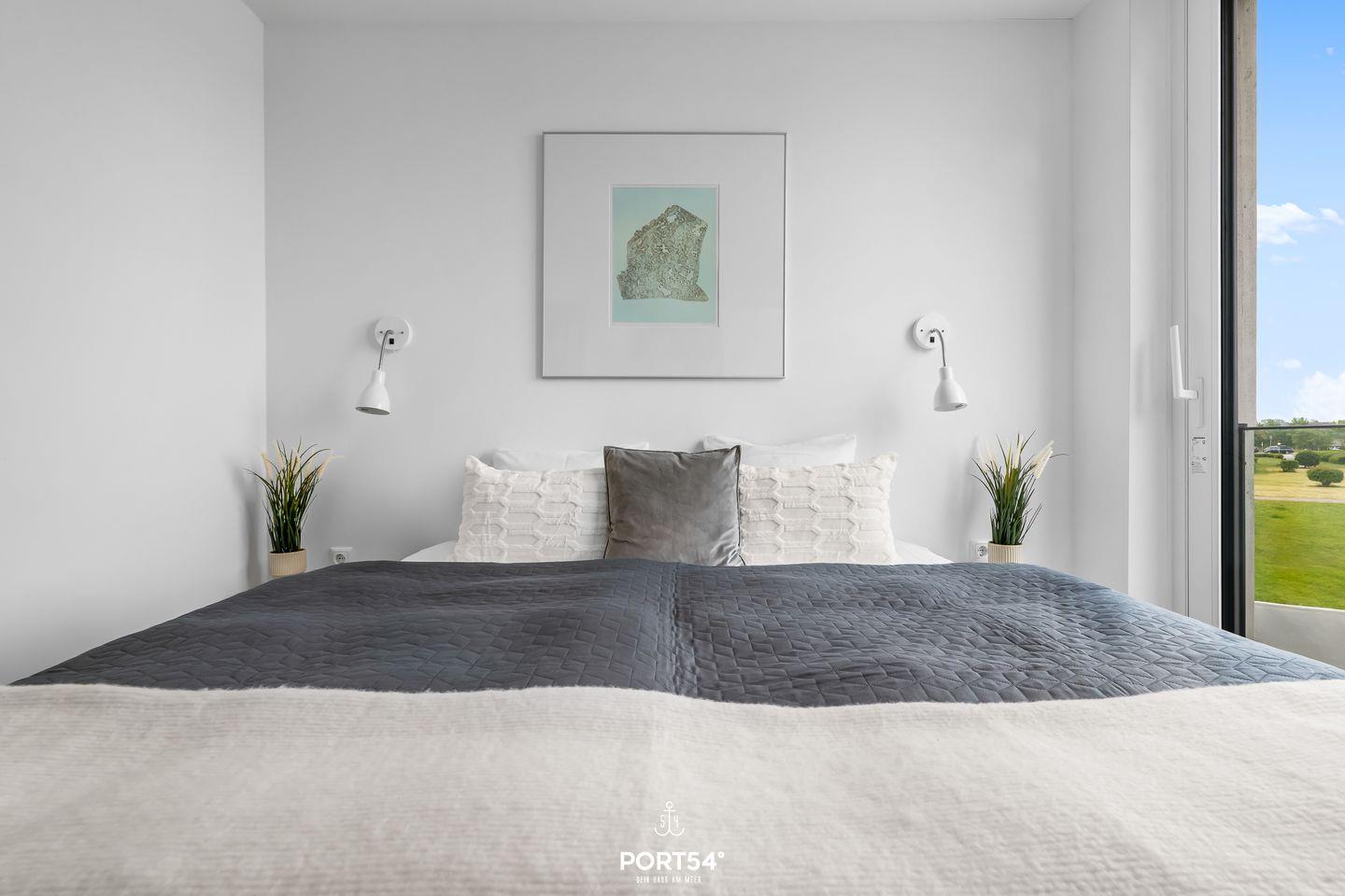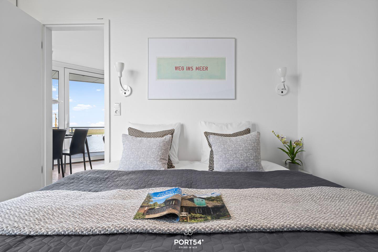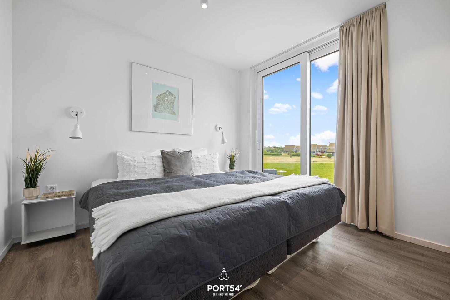 Das Herzstück der Wohnung bildet der offene Wohnbereich, der vom Wohn- und Esszimmer bis zur modernen Küche reicht. Hier können Sie gemeinsame Mahlzeiten zubereiten, während Sie die wunderschöne Aussicht auf das Meer durch die großen Fenster genießen. Ein besonderes Highlight stellt zudem die Terrasse da, die mit 24 qm Größe und umlaufend um die Wohnung verläuft, viele Möglichkeiten bietet, die frische Meeresluft im Freien zu genießen. Die voll ausgestattete Küche lässt keine Wünsche offen und bietet Ihnen alles, was Sie für Ihren Aufenthalt benötigen: von der Spülmaschine bis hin zur Espressomaschine, um Ihren Morgen mit einer köstlichen Tasse Kaffee zu beginnen.