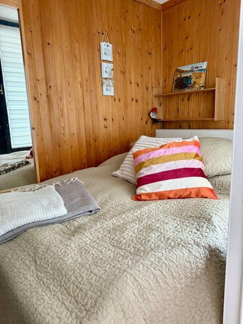 Das Apartment ist ideal für alle, die eine entspannte Auszeit mit maritimem Flair suchen. Der kombinierte Wohn- und Schlafraum lädt zum Verweilen ein und bietet dank des großen Fensters einen traumhaften Blick aufs Wasser. Innenplissees sorgen dafür, dass du es dir abends gemütlich machen kannst. Das separate Schlafzimmer mit komfortablem Doppelbett garantiert erholsame Nächte.