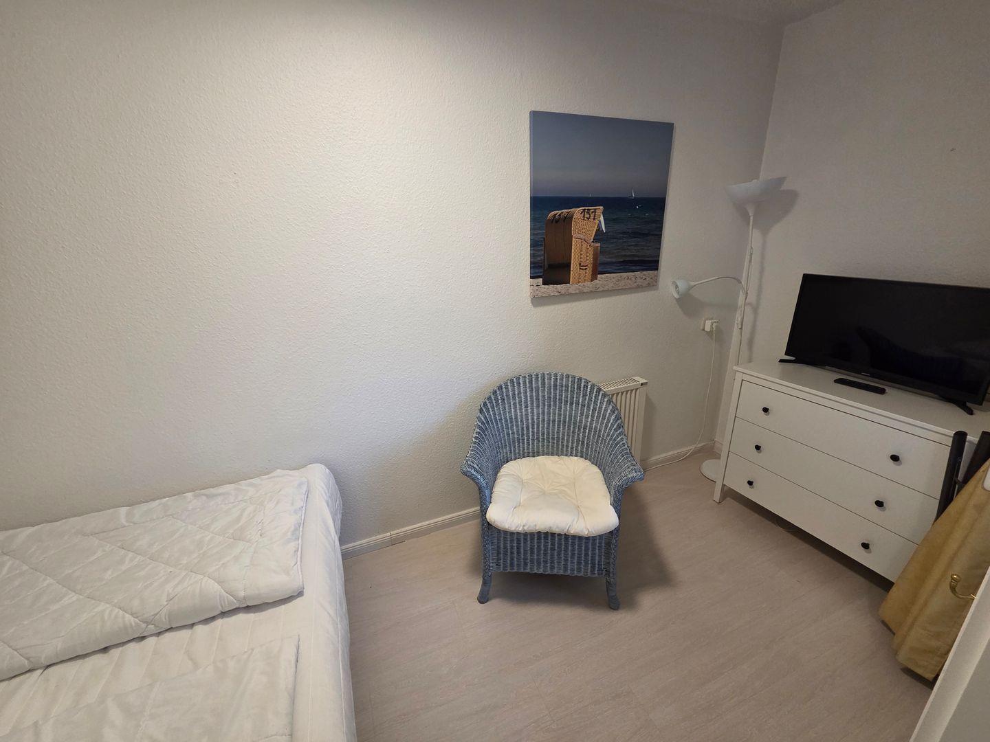 Die 2024 renovierte, modern ausgestattete Ferienwohnung befindet sich im 2. Stock in einem ehemaligen Olympiagebäudes. Sie verfügt über zwei Zimmer, davon ein separates Schlafzimmer mit Laminatboden und ausreichend Stauraum durch Kommode, Schuhschrank und Garderobe. Zwei Fernseher sorgen sowohl im Wohnzimmer als auch im Schlafzimmer für Unterhaltung. Der großzügige Wohnraum bietet eine gemütliche Sofaecke sowie einen separaten Essbereich mit Esstisch; alle Fenster sind mit Sichtschutz ausgestattet.