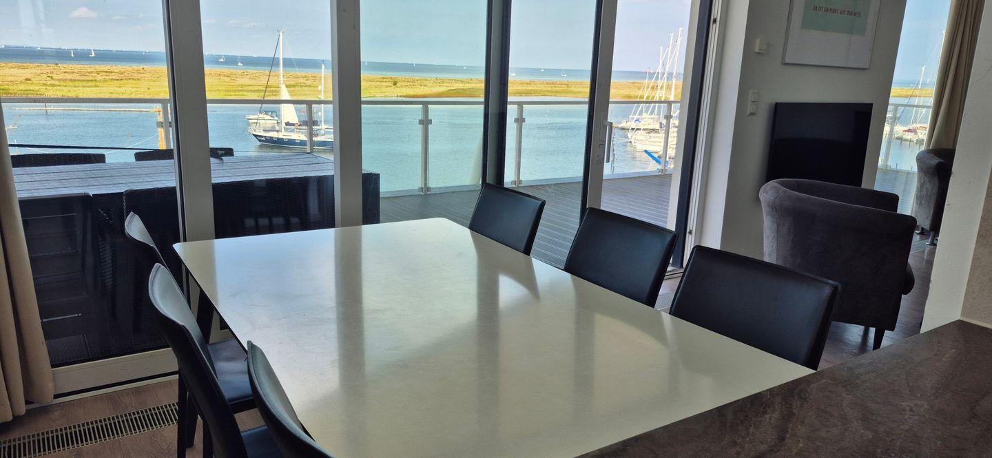 Die *Seebühne* empfängt dich mit einem offenen, traumhaften Küchen-, Ess- und Wohnbereich, der durch eine große, bodentiefe Fensterfront noch mehr von dem herrlichen Ausblick bietet. Der Blick auf das Meer ist einfach beeindruckend und entspannend.