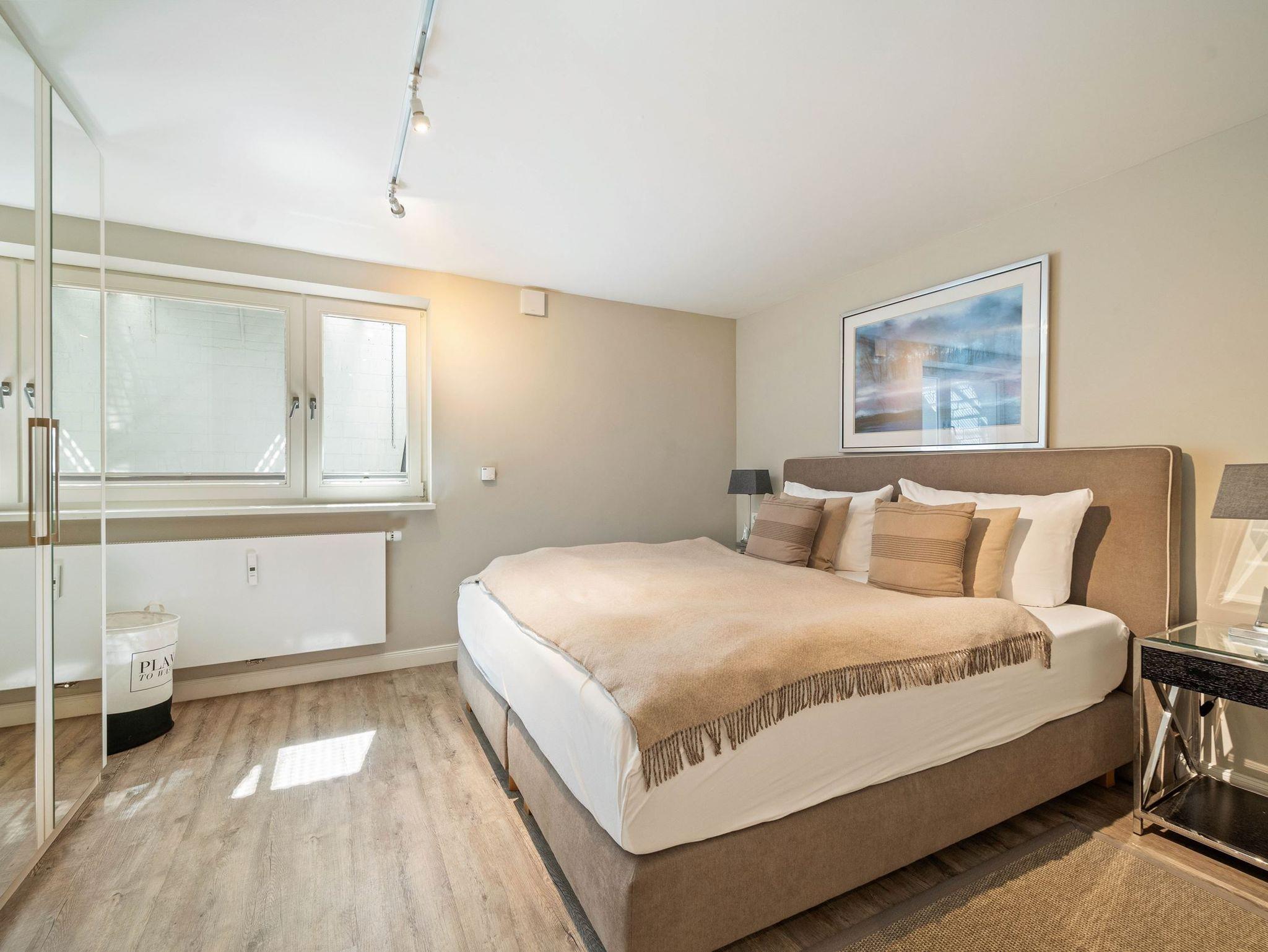 Diese Wohnung wurde komplett renoviert, saniert und neu möbliert. Die harmonische Farbgebung und die wirklich sehr gelungene Möblierung sorgt bei Ihnen für den absoluten Wohlfühleffekt. Die Wohnung ist wie folgt aufgeteilt: Erdgeschoss mit Wohnraum, Gäste WC, große offene Küche und Diele. Untergeschoss mit Badezimmer und den beiden Schlafzimmern.