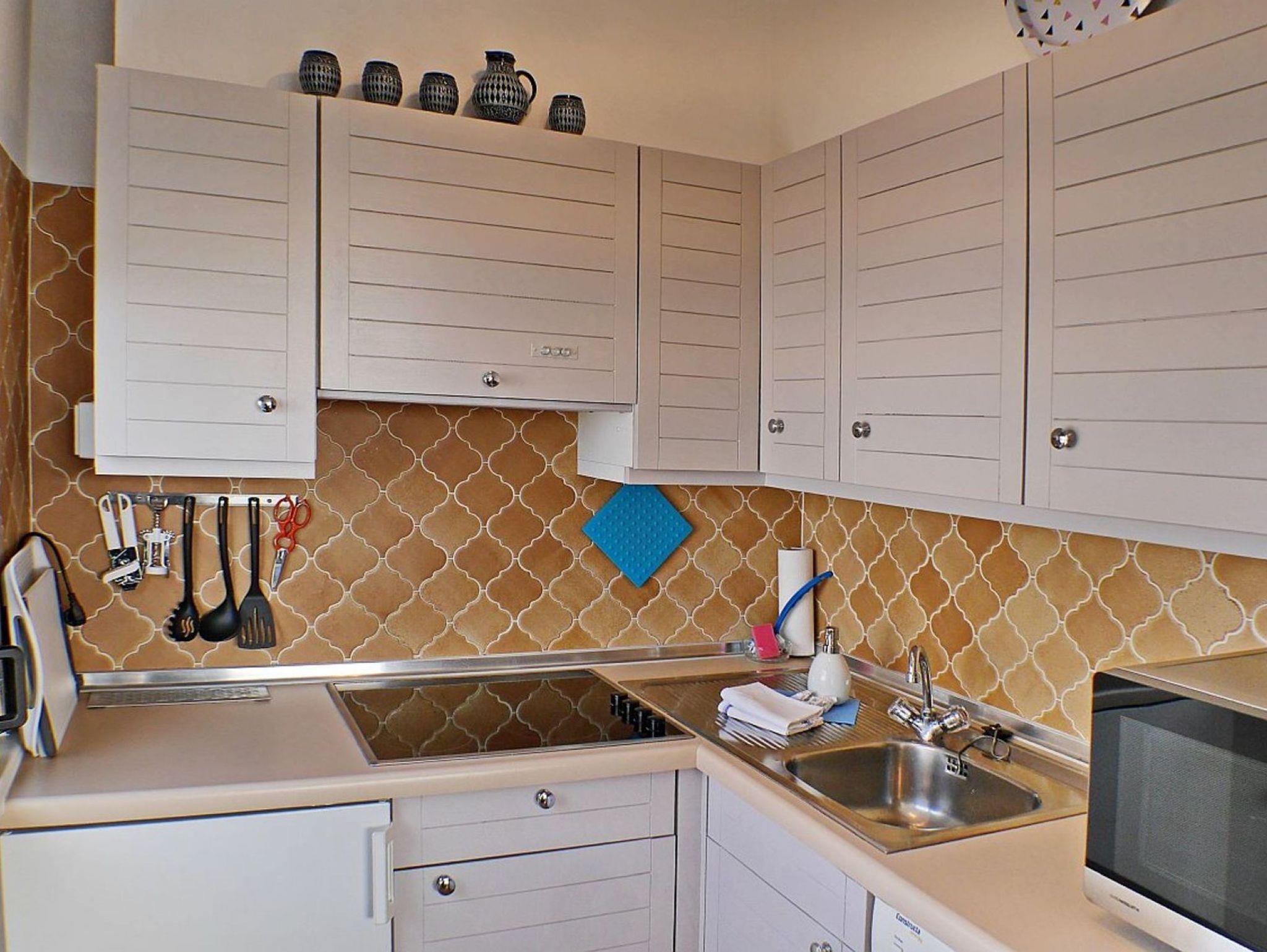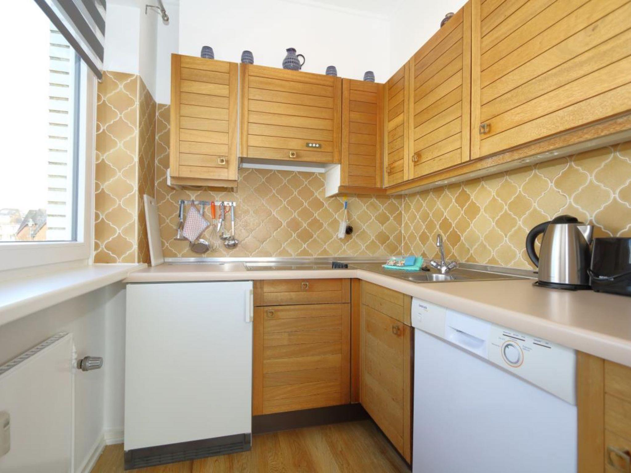 Die separate Küchenzeile ist ausgestattet mit 4-Plattencerankochfeld, 5 in 1-Multifunktionsmikrowelle, Geschirrspüler, Kühlschrank mit Gefriermöglichkeit, Kaffeemaschine, Wasserkocher, Toaster und Geschirr für den täglichen Bedarf ist selbstverständlich.