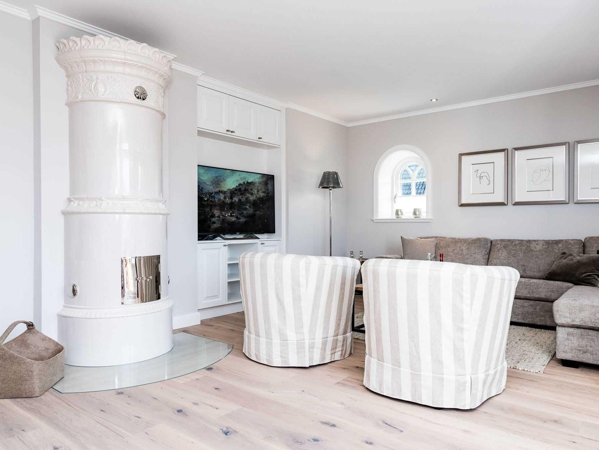 Alle Geschosse verfügen über Fußbodenheizung und in den Bädern sind zusätzlich Handtuchheizkörper vorhanden. Neben dem großen Flat-Screen im Wohnbereich verfügen zudem alle Schlafzimmer über einen Flachbildfernseher.