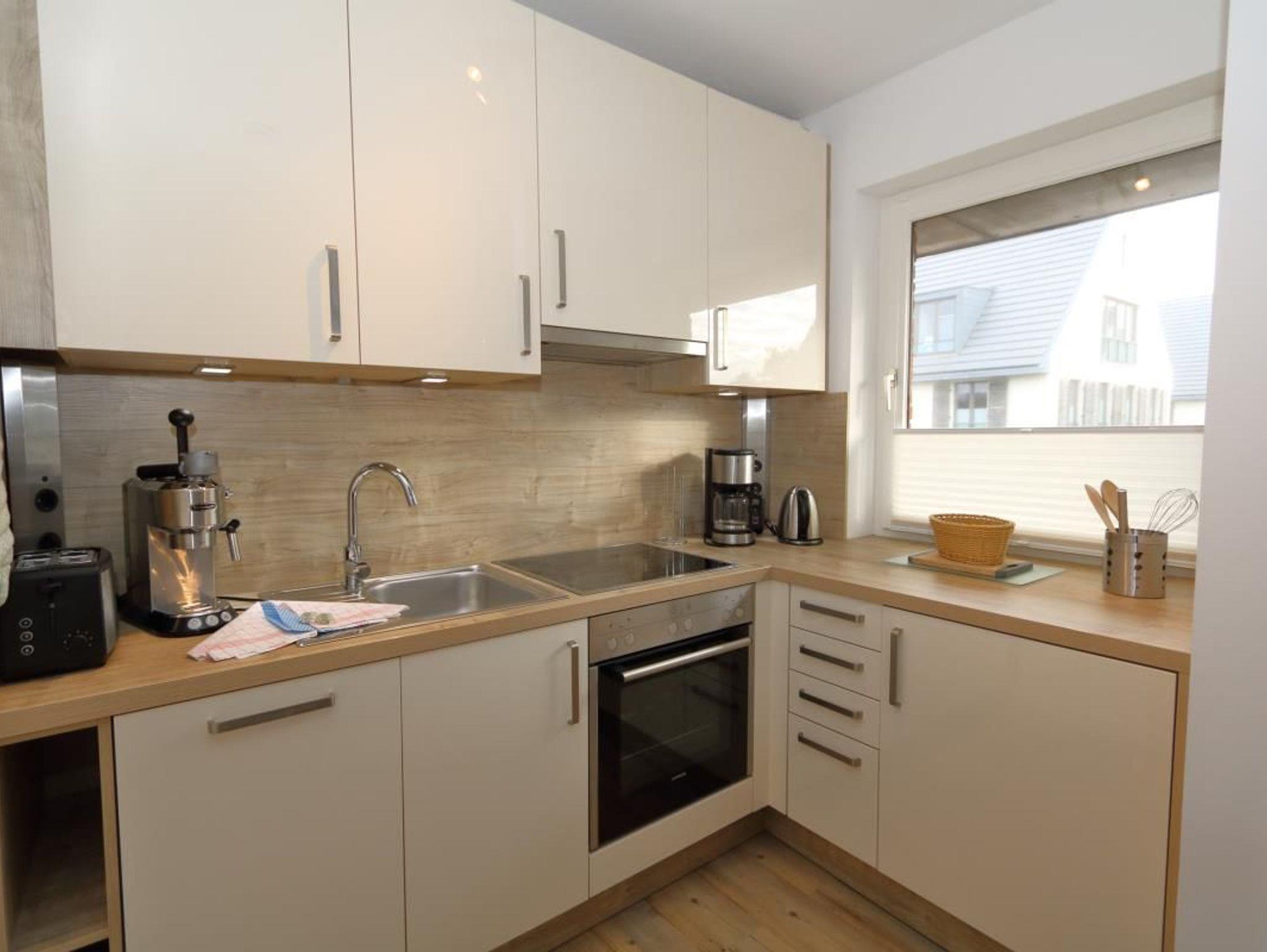 moderne separate Küche, es steht eine Filterkaffeemaschine zur Verfügung.