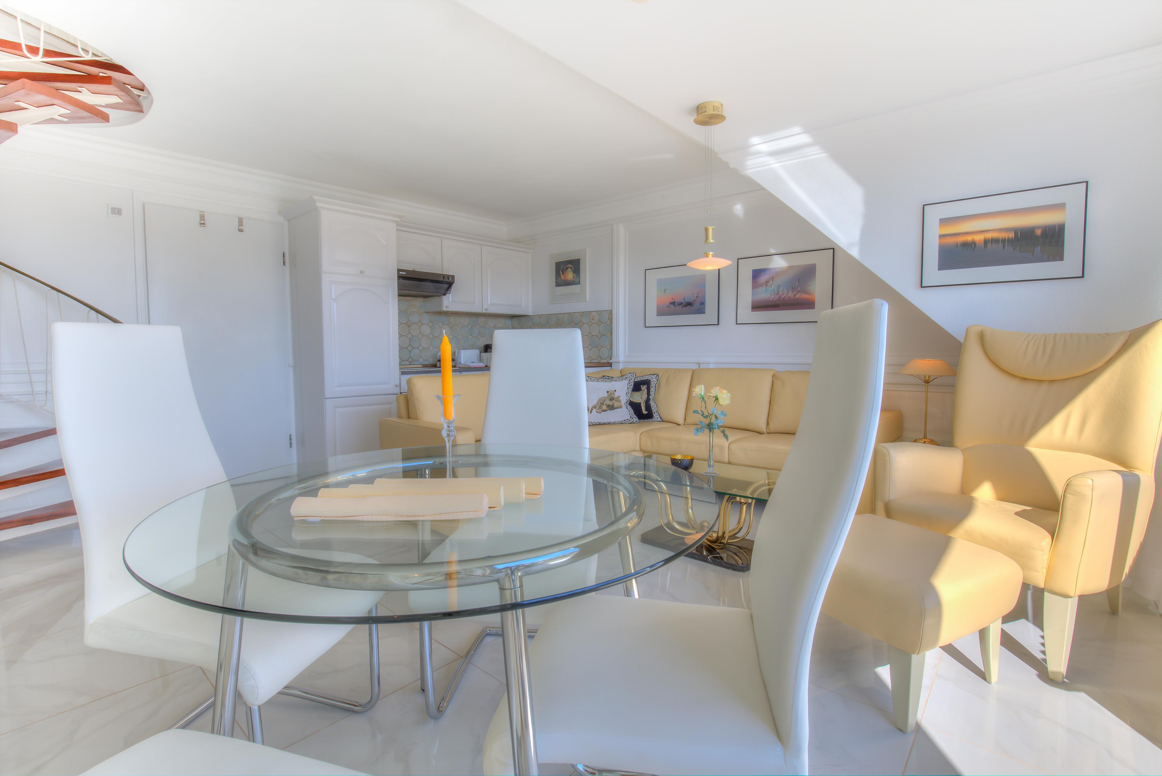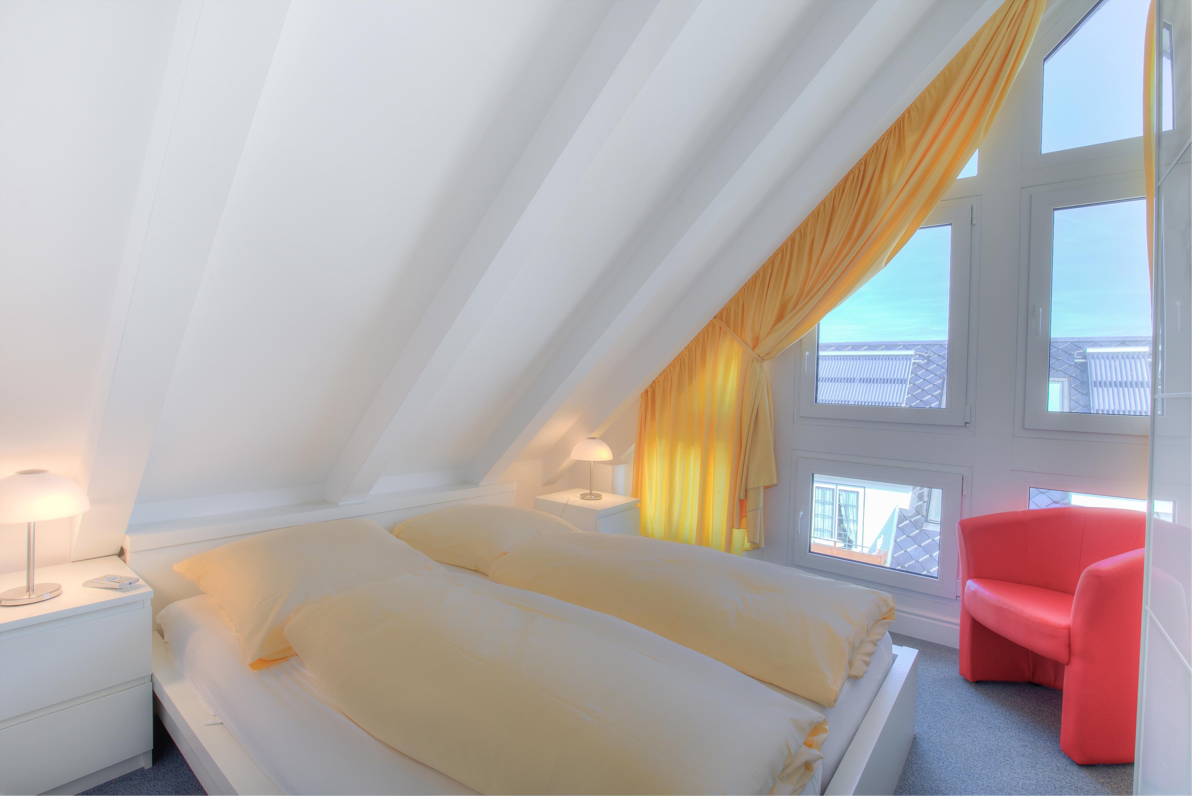 Beide Schlafzimmer (Doppelbett und Einzelbetten) sowie das Duschbad befinden sich oberhalb des Wohnzimmers. Beide Räume sind durch eine gut begehbare Zimmerwendeltreppe miteinander verbunden.