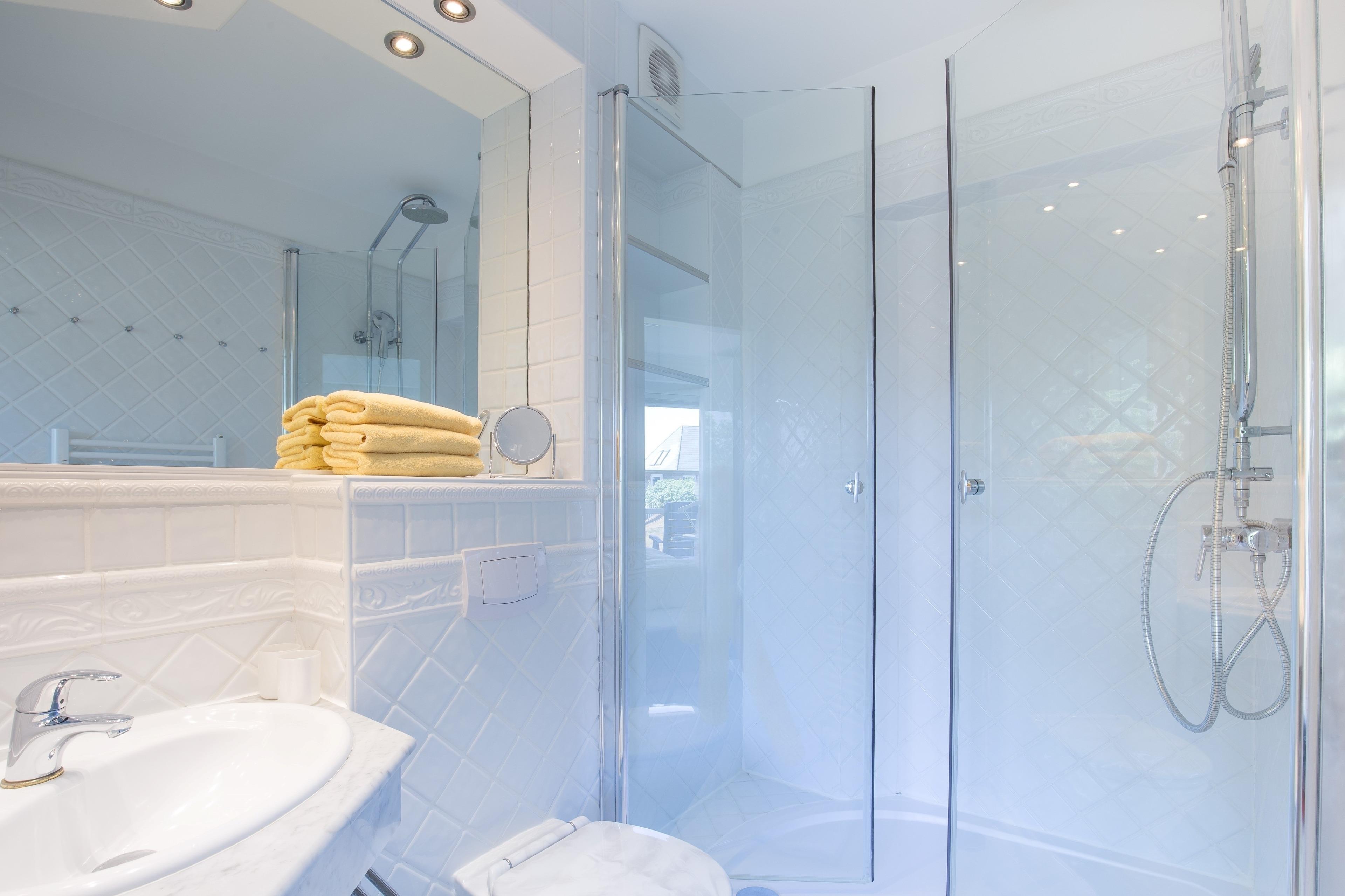 Viel Komfort schenken Ihnen die beiden Bäder: In einem steht Ihnen eine große Duschwanne mit Regendusche und im anderen ein Whirlpool mit Duschbereich zur Verfügung.