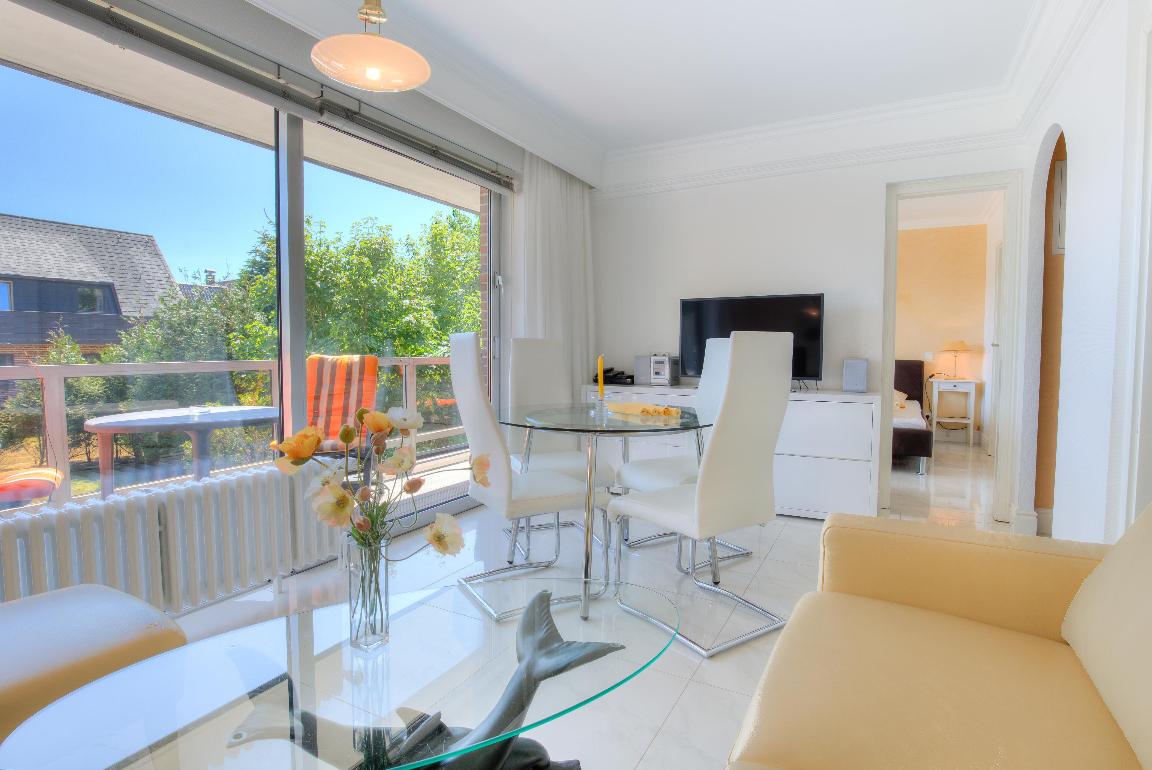 In dieser charmanten und zauberhaften 3 Zimmer-Ferienwohnung können Sie einen komfortablen Sylt-Urlaub verbringen. Auf dem großen Balkon können Sie bei einem Kaffee die frische Sylter Luft genießen.