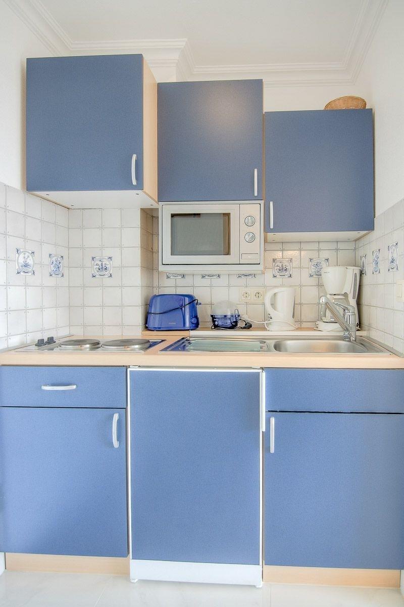Diese ca. 20 qm große Ferienwohnung besteht aus einem Wohn/Schlafraum, einem kleinen Vorflur mit komplett eingerichteter Kochnische mit Geschirrspüler und Mikrowelle, Dusche/WC und großem Balkon mit Gartenmöbeln. Im Wohn-/Schlafraum sind Schrankwand mit Schrankwandbetten und hochwertige Polstermöbel vorhanden.