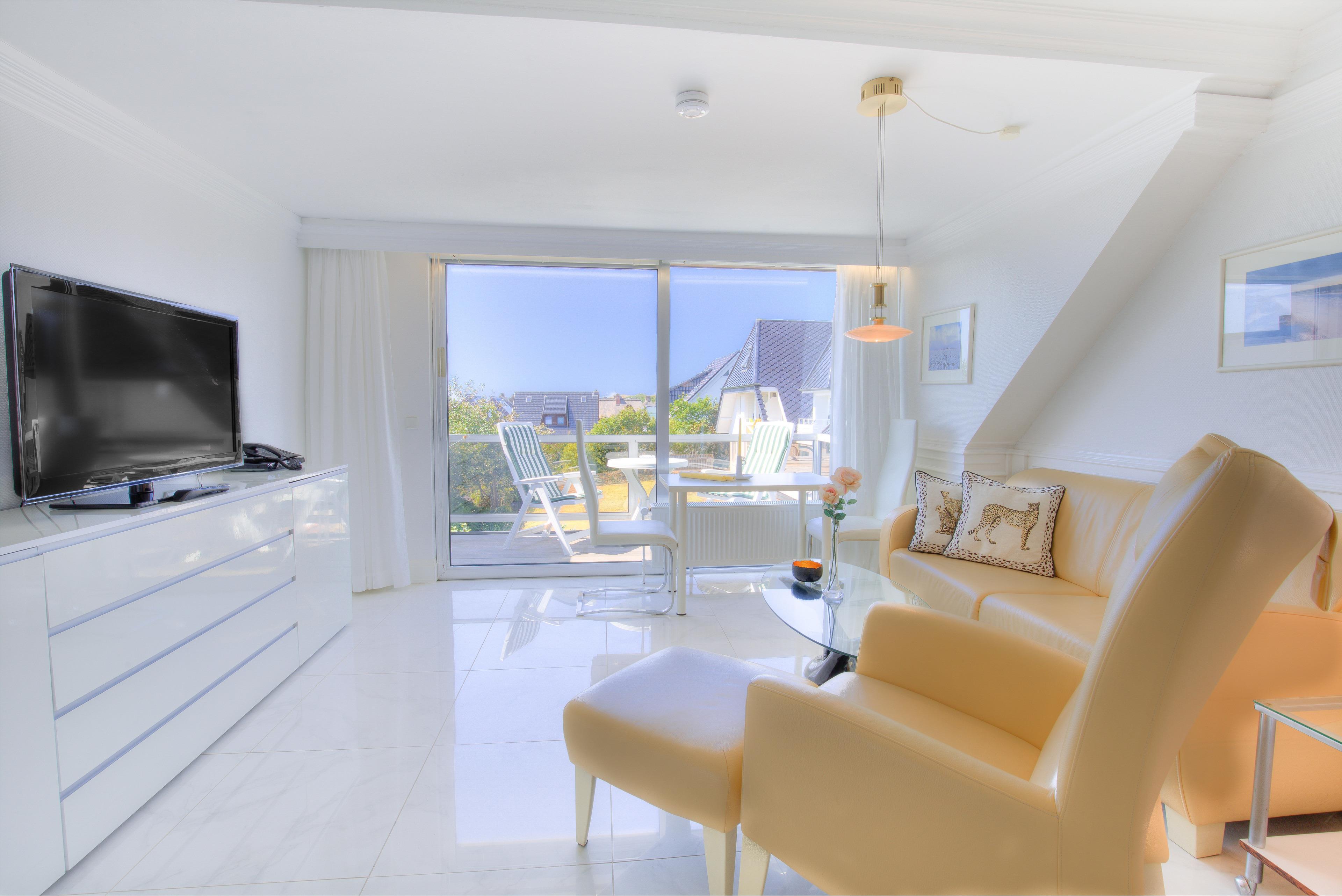 Der große Süd-Westbalkon, mit Gartenmöbel ausgestattet, verspricht idyllische Stunden unter der Sylter Sonne.