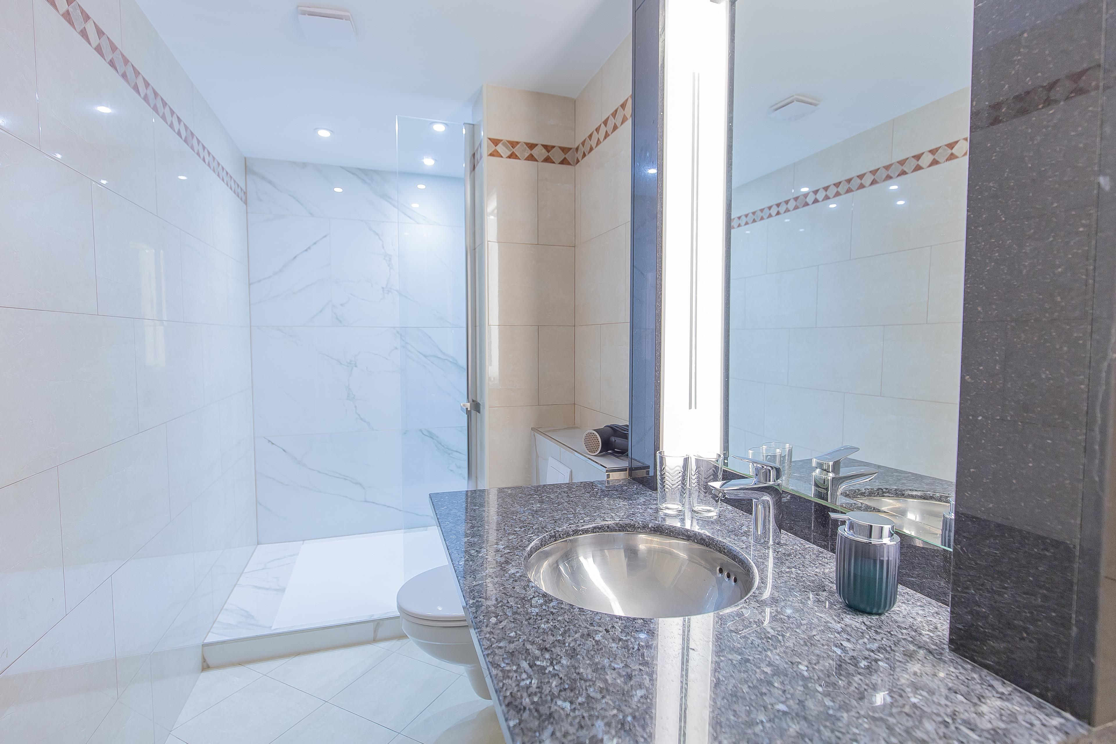 Komfortfaciliteter på badeværelset (hårtørrer, shampoo, hårbalsam, håndsæbe og brusegel)