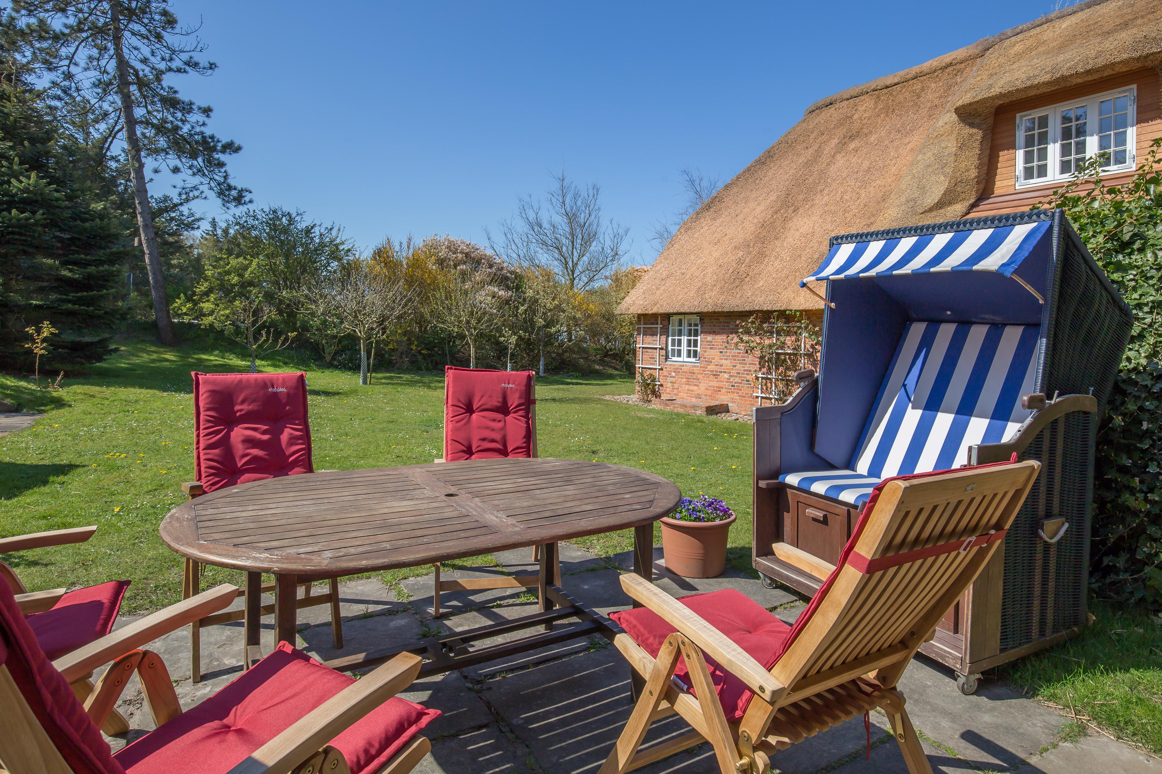 Stilecht auf Sylt unter Reet urlauben in dieser 130m² großen 4 Zimmer-Ferienwohnung im friesischen Stil.