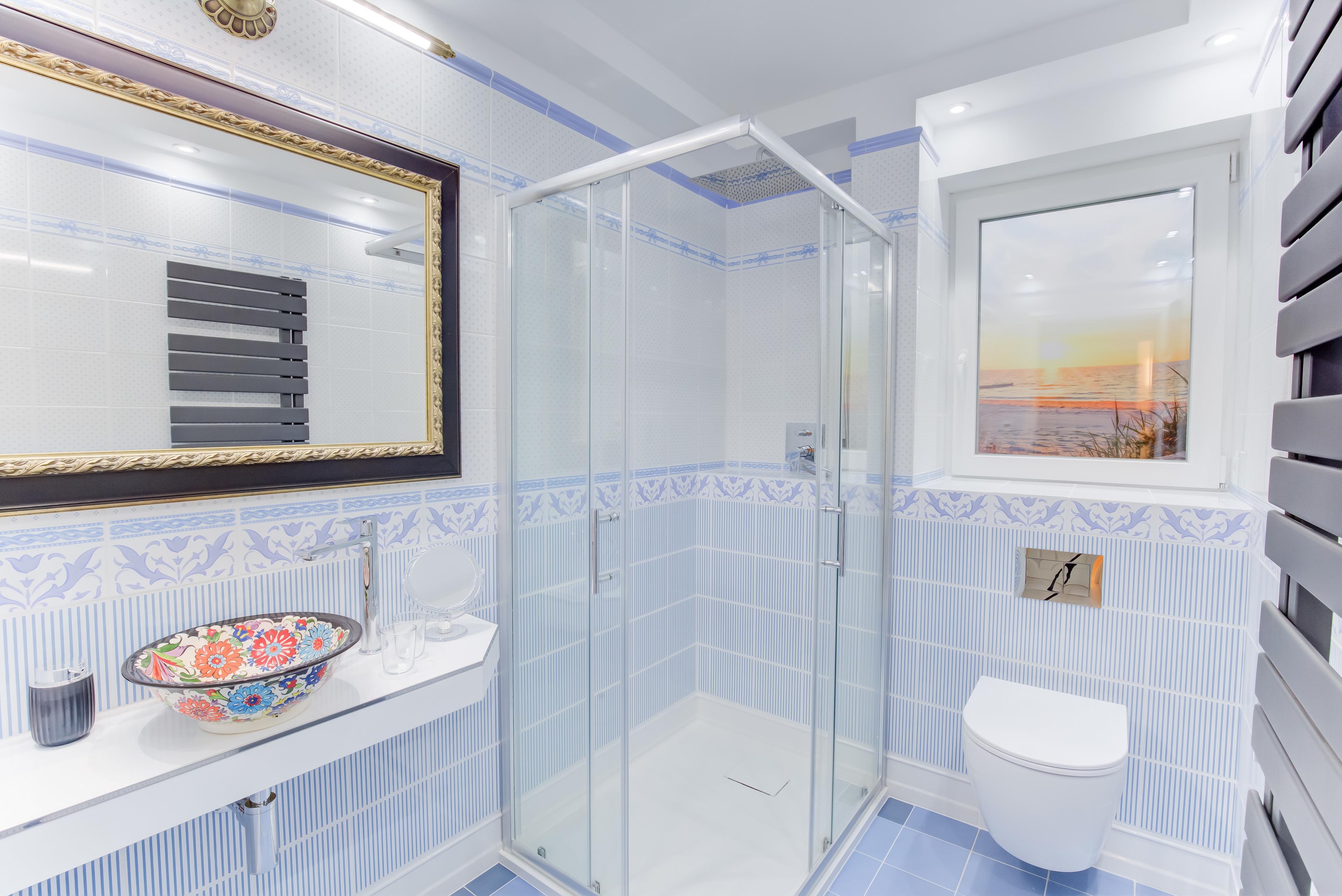 Komfortfaciliteter på badeværelset (hårtørrer, shampoo, hårbalsam, håndsæbe og brusegel)