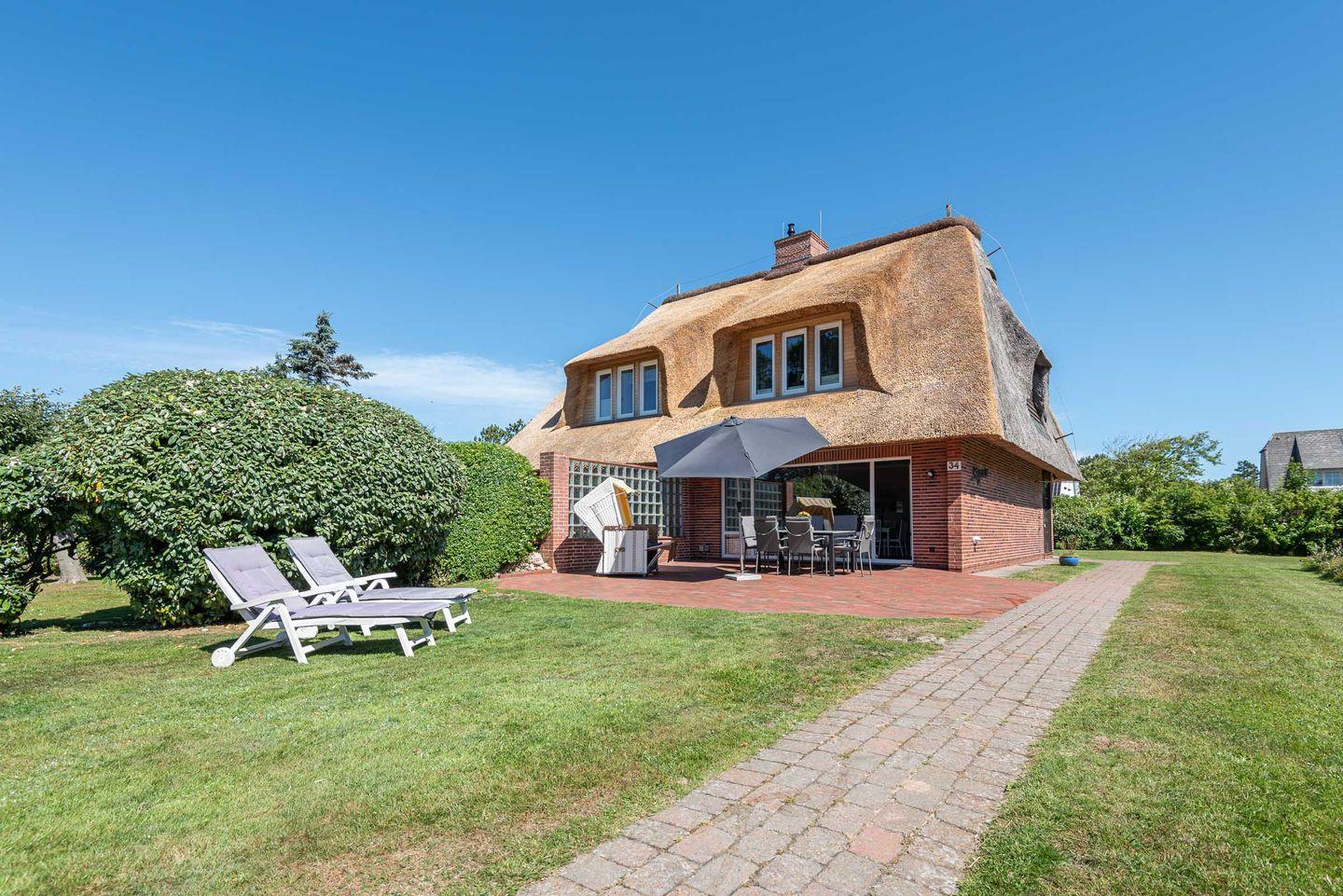 Strandnah, ruhig und zentral liegt dieses herrliche Ferienhaus mit Reetdach in Wenningstedt. Auf 90 m² verteilen sich die vier stilvoll eingerichteten Zimmer und bieten ausreichend Platz für eine Belegung mit bis zu 6 Personen.