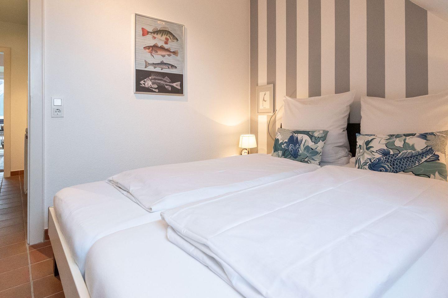 Strandnahen Paar Urlaub verbringen Sie in diesem Dachgeschoss Domizil mit 2 Zimmern und 40 m² Wohnraum. Genießen Sie ungestört die hellen Räumlichkeiten sowie die Sonne auf Ihrem Balkon und lassen Sie die Seele baumeln.