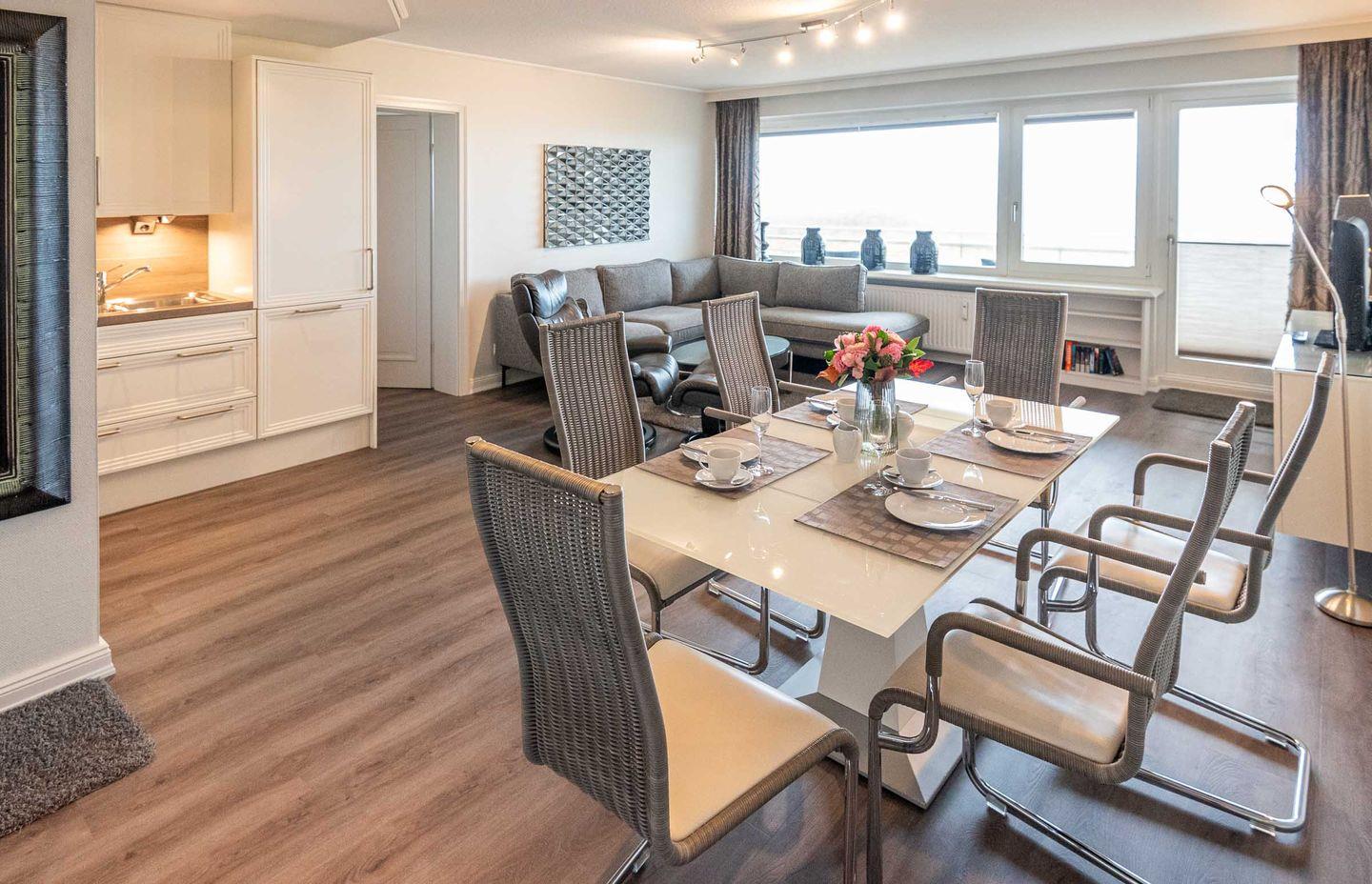 Für den Sylturlaub mit Meerblick bietet diese 2-Zimmerwohnung mit 65 m² Größe die ideale Basis. Bis zu 4 Personen verbringen hier traumhaft schöne Ferien in bester Strandlage. Helle Atmosphäre und großer Balkon inklusive.