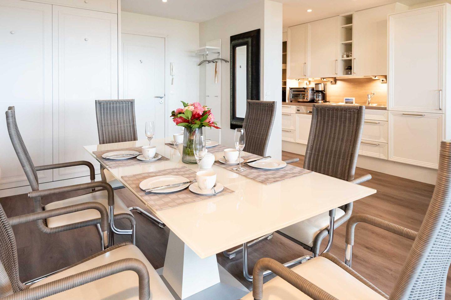 Dieses lichtdurchflutete Zweiraum-Appartement im "Dünenhof zum Kronprinzen" liegt in der ersten Etage. Es ist komplett nach Westen ausgerichtet und schenkt Ihnen einen unvergesslichen Meer- & Weitblick.