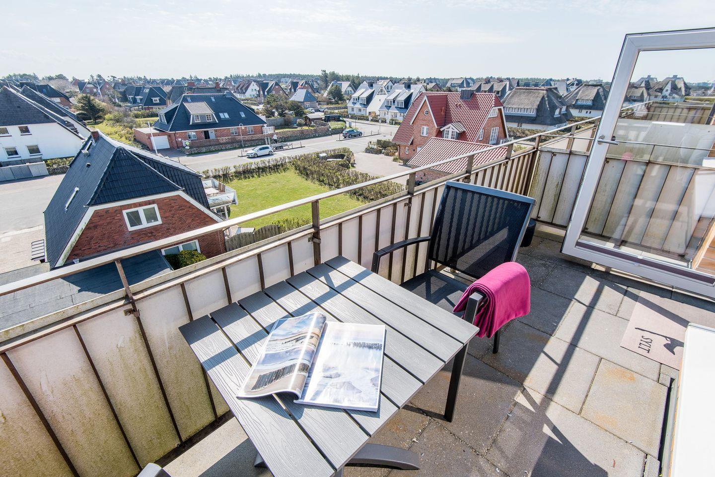 Diese neu renovierte (März 2021) Ferienwohnung bietet ein atemberaubendes Panorama in bester Lage Sylts. Näher können Sie am Strand nicht wohnen. Das lichtdurchflutete Appartement liegt im Penthouse (3. Stock) im "Dünenhof zum Kronprinzen". Bis zur zweiten Etage können Sie den Aufzug wählen oder das Treppenhaus nutzen.