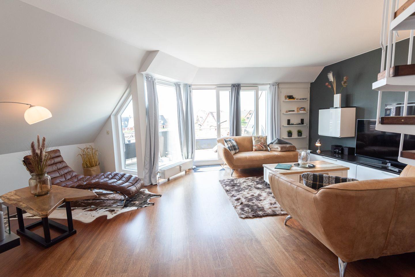 Diese hochwertige Maisonette-Ferienwohnung befindet sich in einer eingewachsenen, ruhigen Wohnanlage und überzeugt mit hohem Komfort und liebenswerten Details.