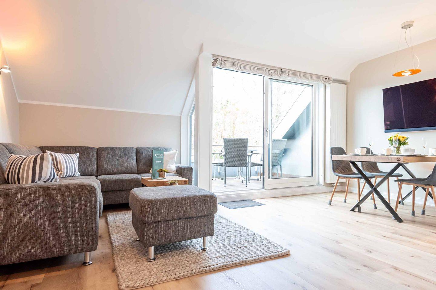 Dieses lichtdurchflutete Domizil im modernen Wohnstil wurde im Frühjahr 2024 renoviert und teils mit neuen Möbeln ausgestattet. Die großzügige Ferienwohnung im Obergeschoss befindet sich auf zwei Ebenen im beliebten Ferienhaus "Käpt'n Nelson", das durch seine ruhige Wohnlage besticht.