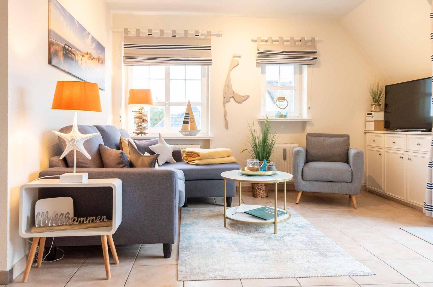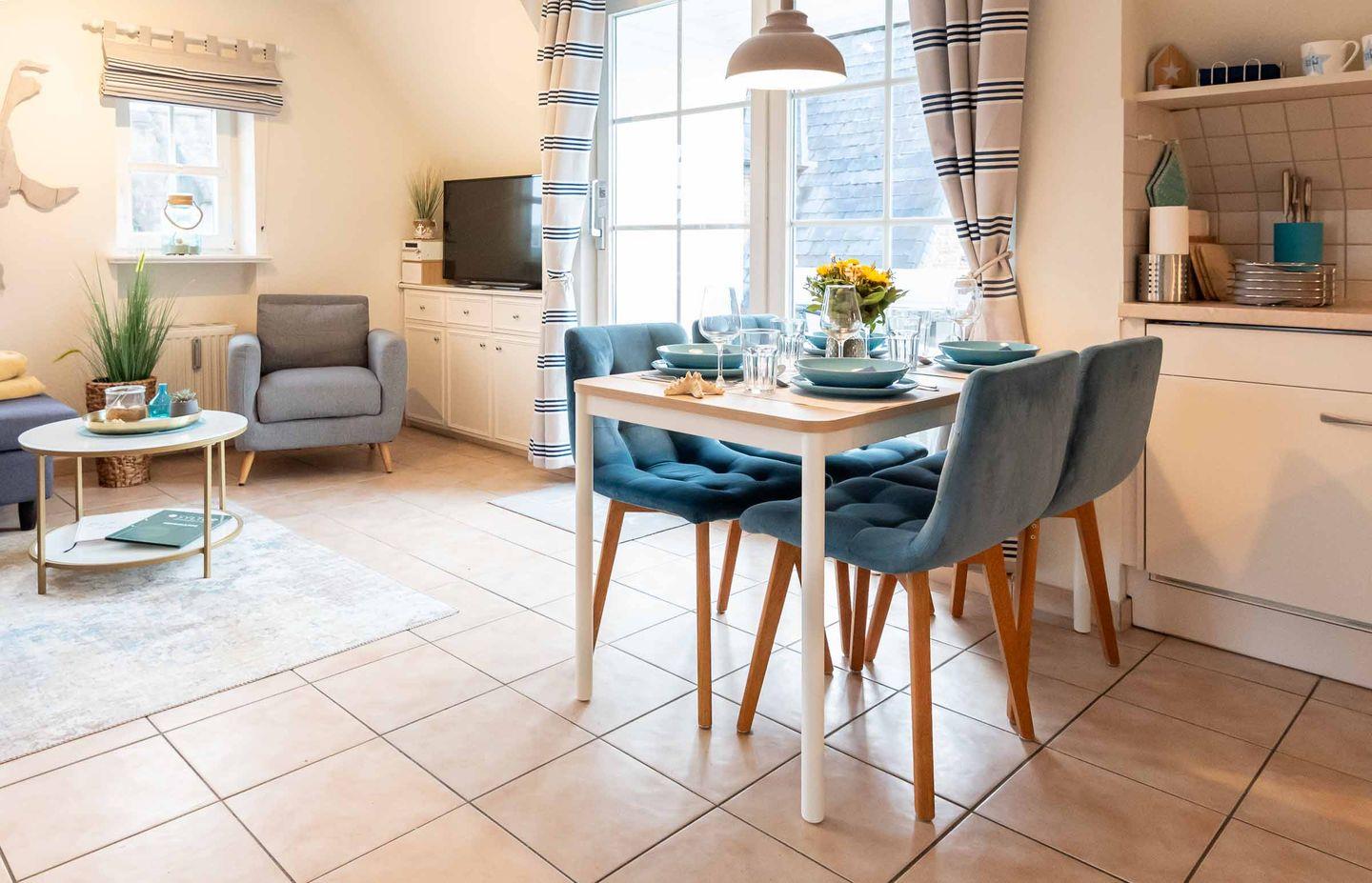 Helle Obergeschoss-Ferienwohnung SyltStern in Wenningstedt mit einer Wohnfläche von ca. 55 m² bietet Platz für bis zu 4 Personen.