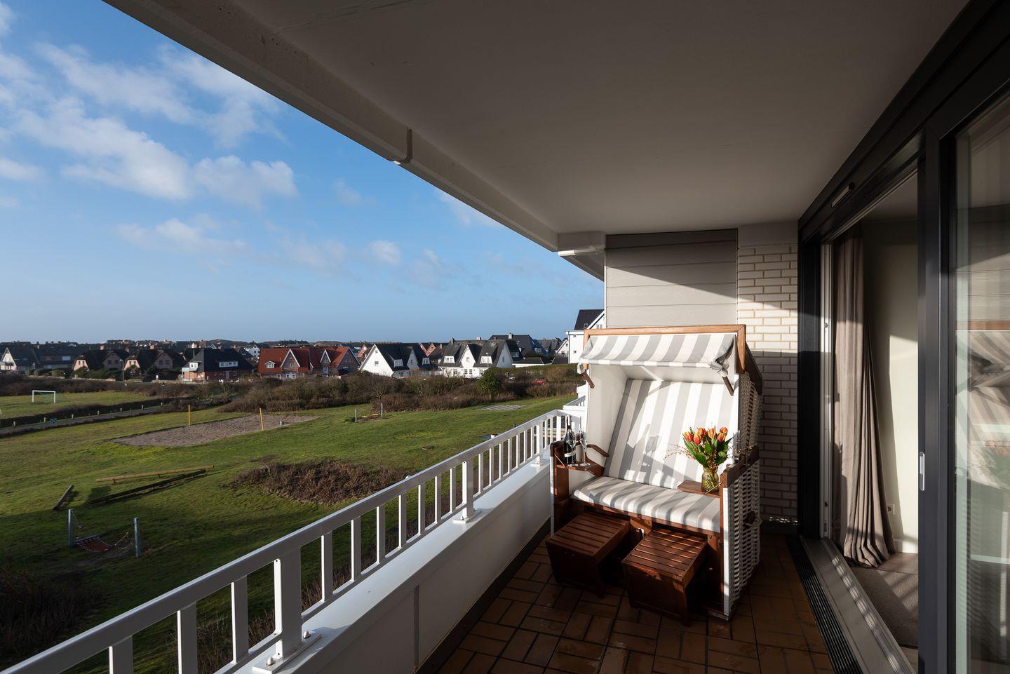 Moderne 2-Zimmerwohnung über 2 Etagen mit ca. 65 m² Wohnfäche für 2 Personen in Wenningstedt. Herrlich seitlicher Dünen- und Meerblick vom Balkon.