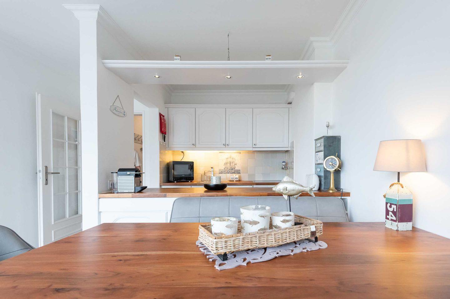 Koch-/Wohn-/Essbereich: Das lichtdurchflutete Wohnzimmer empfängt Sie mit einer gemütliche Sofaecke, die sich als Schlafstätte für zwei weitere Personen umfunktionieren lässt. Ein großer Essplatz verspricht viele entspannte Mahlzeiten. Die offene, moderne Küche wurde perfekt in den Raum integriert und grenzt sich durch einen Küchentresen optisch vom Wohnbereich ab. Sie ist hochwertig und sehr gut ausgestattet.