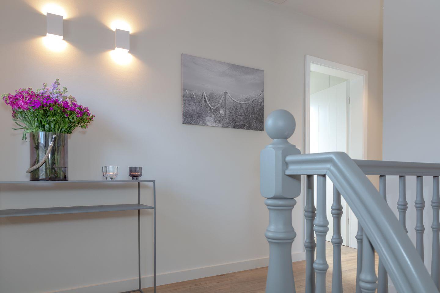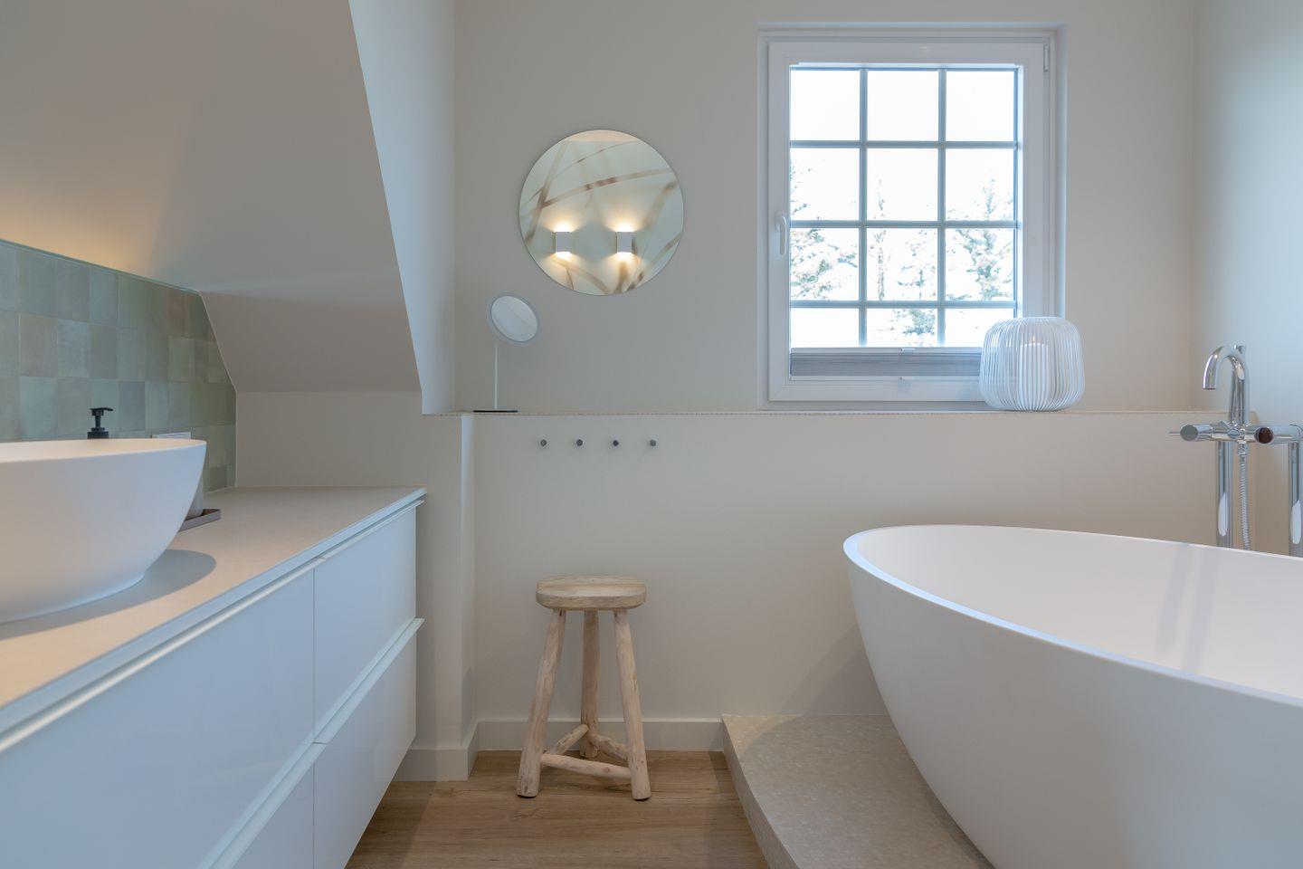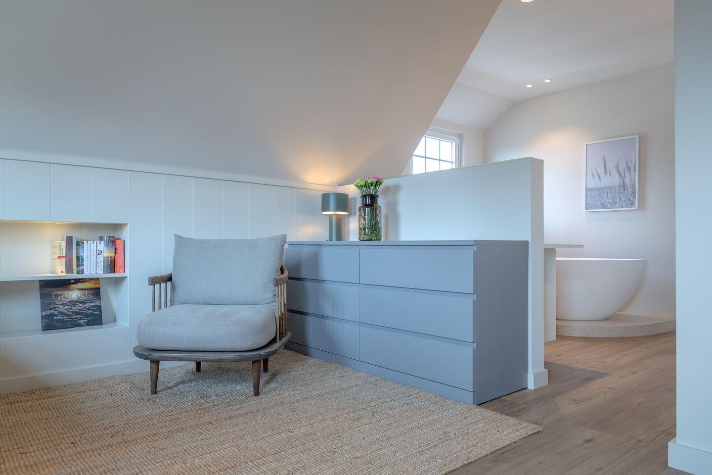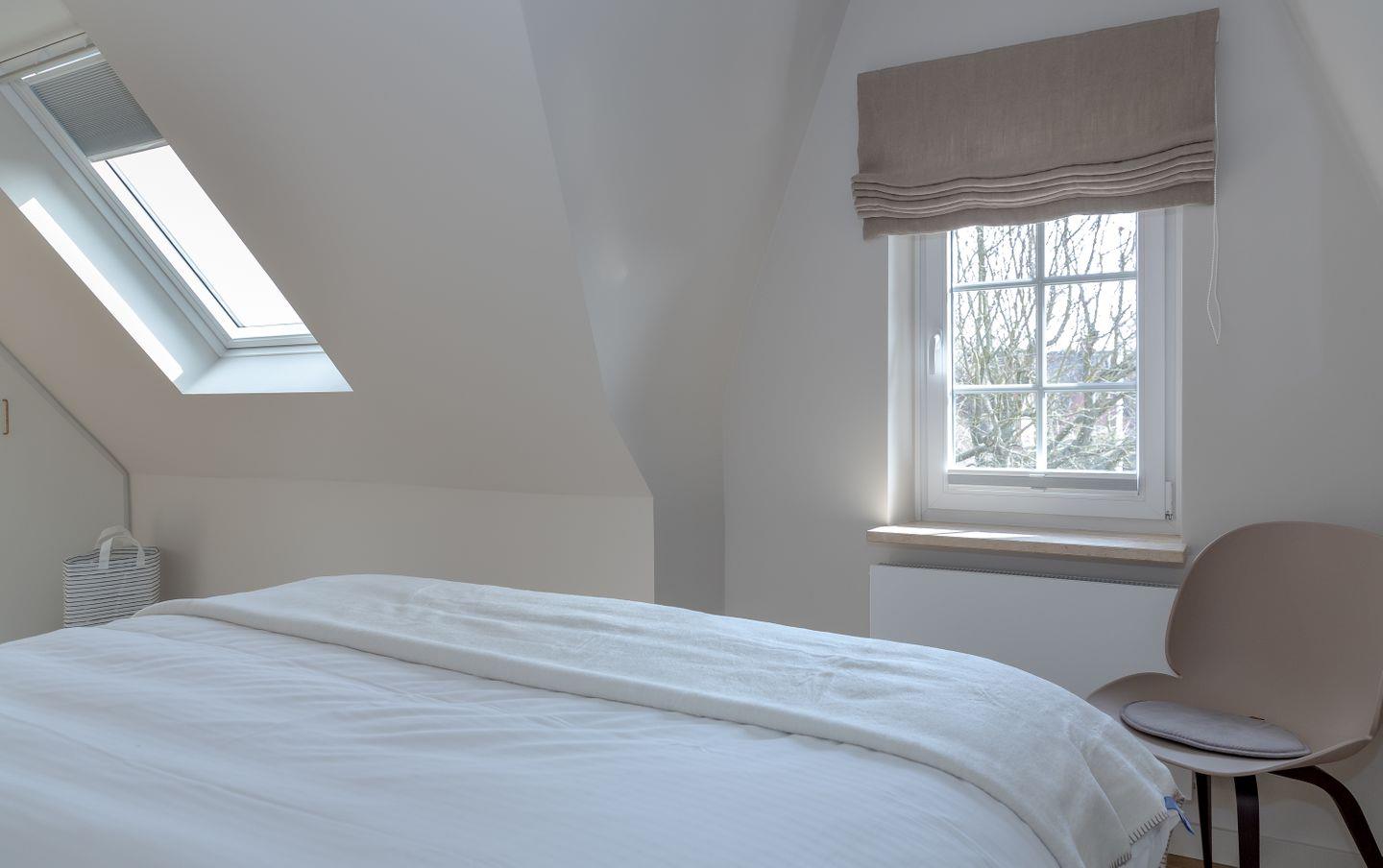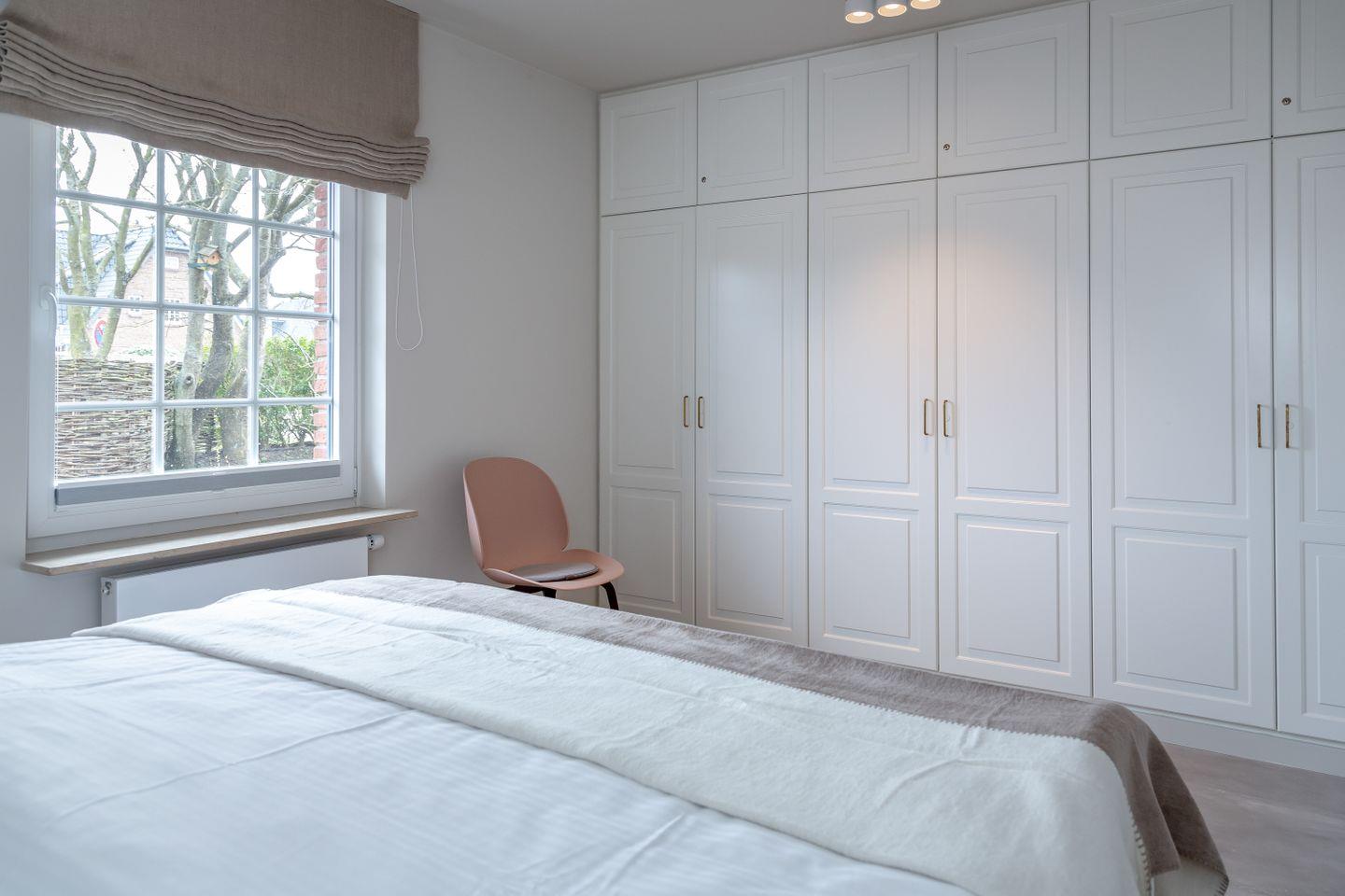 Ein Schlafzimmer (Bett 1,80 x 2,00m) und ein großes Badezimmer mit Dusche befinden sich im Erdgeschoss. Drei weitere Schlafzimmer sowie zwei Badezimmer mit Dusche sind im Obergeschoss untergebracht. Der große Master-Bedroom (Bett 1,80 x 2,00m), verfügt über eine freistehende Badewanne und ist somit zugleich eine edle Wellness-Oase. Zudem ist im Master-Bedroom ein Arbeitsbereich mit Schreibtisch eingerichtet.