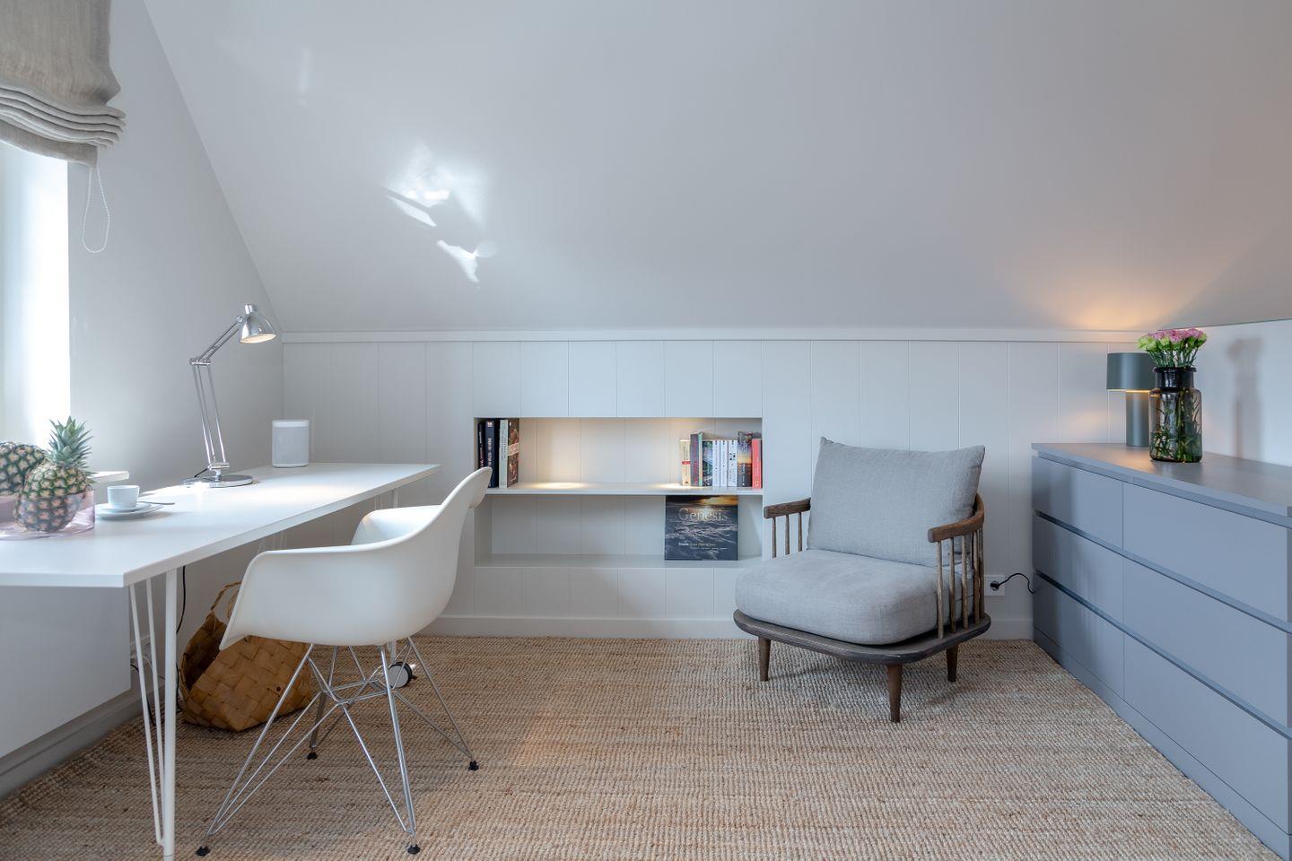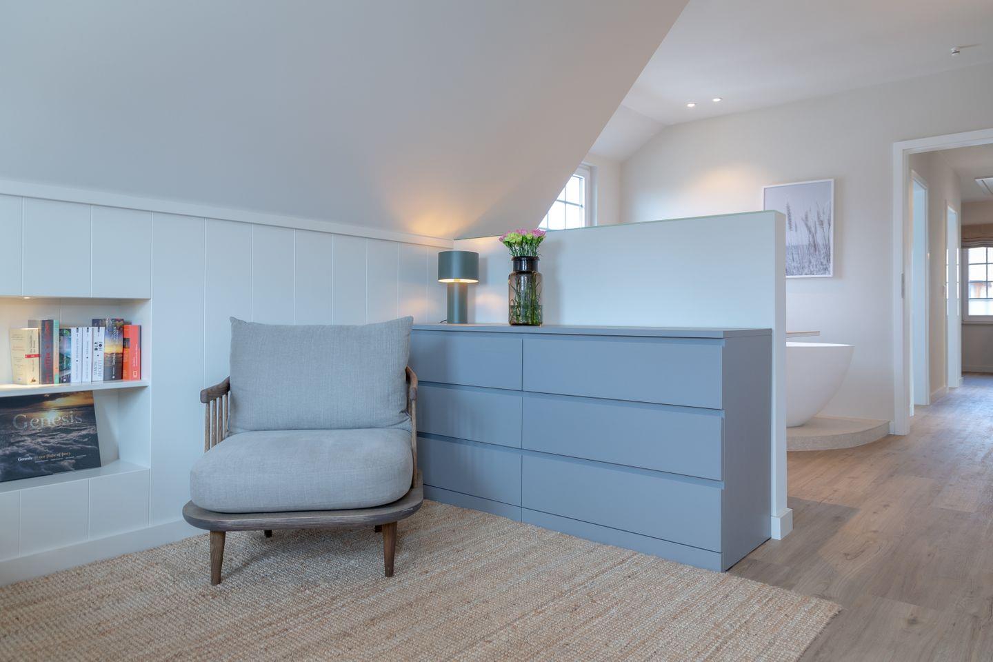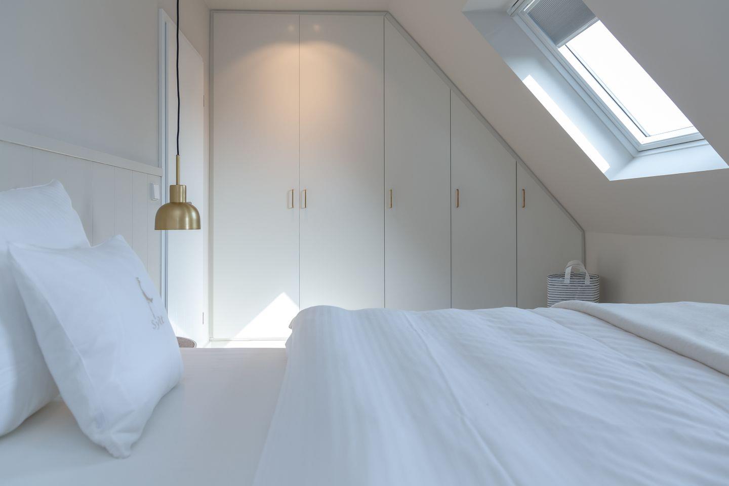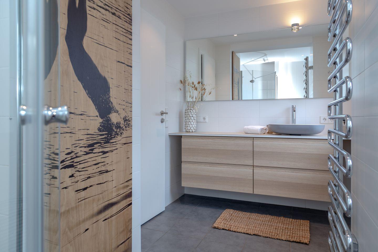 Ein Schlafzimmer (Bett 1,80 x 2,00m) und ein großes Badezimmer mit Dusche befinden sich im Erdgeschoss. Drei weitere Schlafzimmer sowie zwei Badezimmer mit Dusche sind im Obergeschoss untergebracht. Der große Master-Bedroom (Bett 1,80 x 2,00m), verfügt über eine freistehende Badewanne und ist somit zugleich eine edle Wellness-Oase. Zudem ist im Master-Bedroom ein Arbeitsbereich mit Schreibtisch eingerichtet.