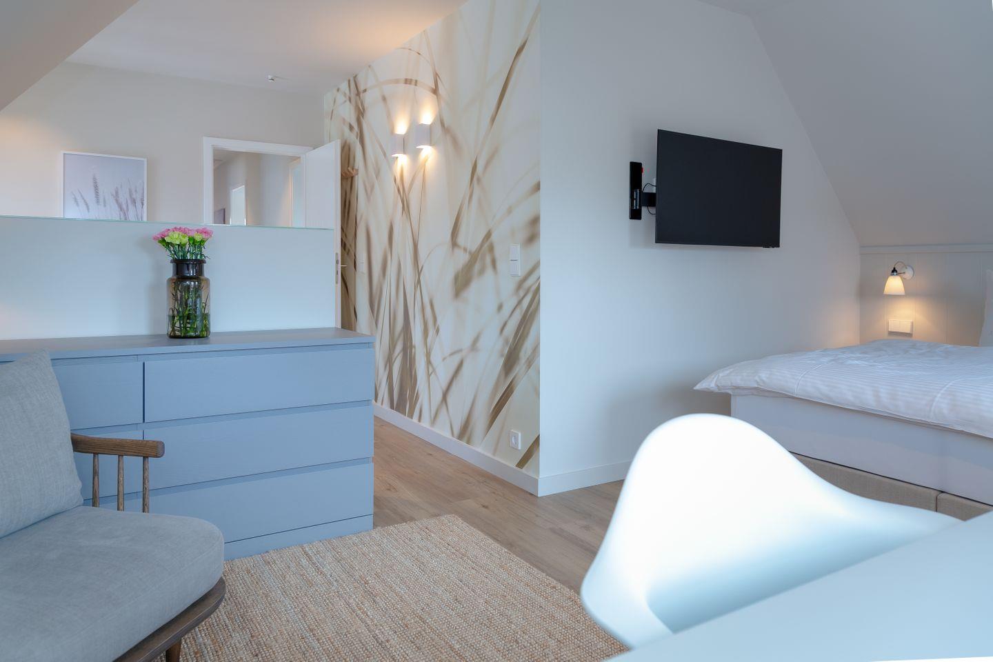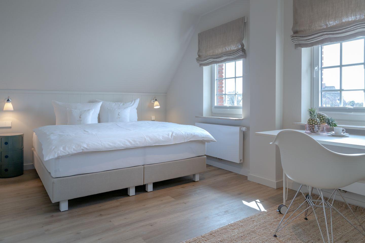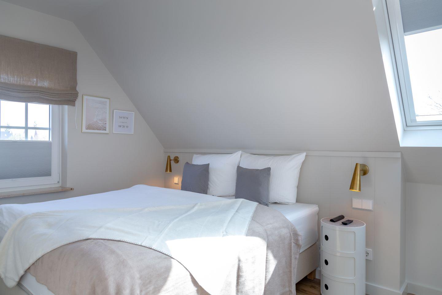 Die zwei weiteren Schlafzimmer verfügen jeweils über Boxspringbetten 1,60m x 2,00m. Ein Kinderreisebett sowie ein Treppenschutzgitter können ebenfalls bereitgestellt werden.
