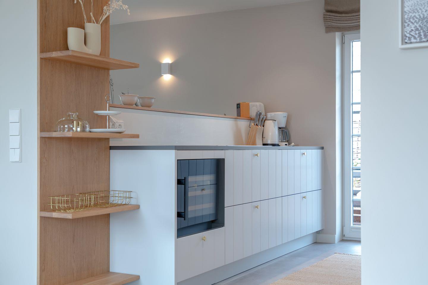 Die offene und hochwertig ausgestattete Küche verfügt unter anderem über einen Weinkühlschrank, ein Induktionskochfeld und lässt auch auf allen anderen Eben das Kochen in Ihrem Urlaub zum Genuss werden.