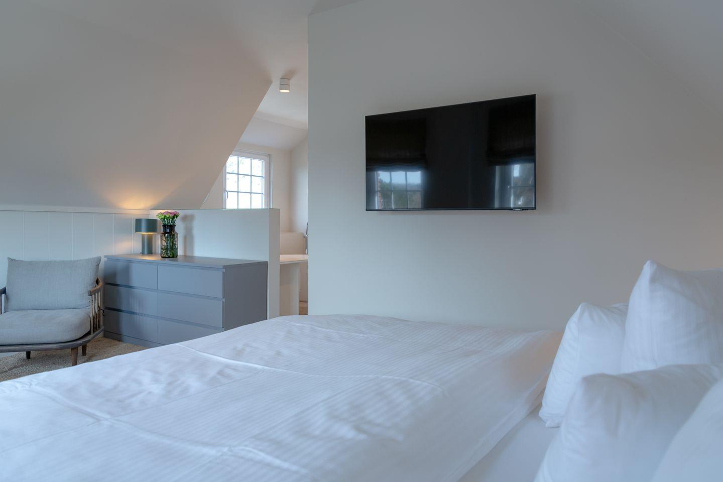 Die Schlafzimmer sind mit komfortablen Boxspringbetten, einem Fernseher, Nachttischen und genügend Stauraum für Ihre Urlaubsgarderobe ausgestattet.