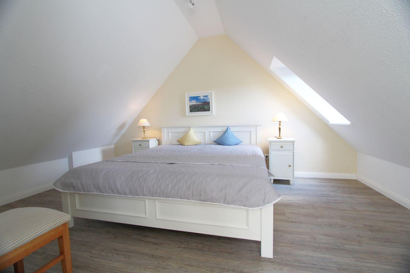 Das Hausteil verfügt über drei separate Schlafräume. Im Obergeschoss befinden sich zwei Doppelschlafzimmer, eines davon mit Südbalkon. Ein weiterer Doppelschlafraum befindet sich im Dachgeschoss des Hausteils. Alle Schlafzimmer verfügen über ein TV-Gerät.