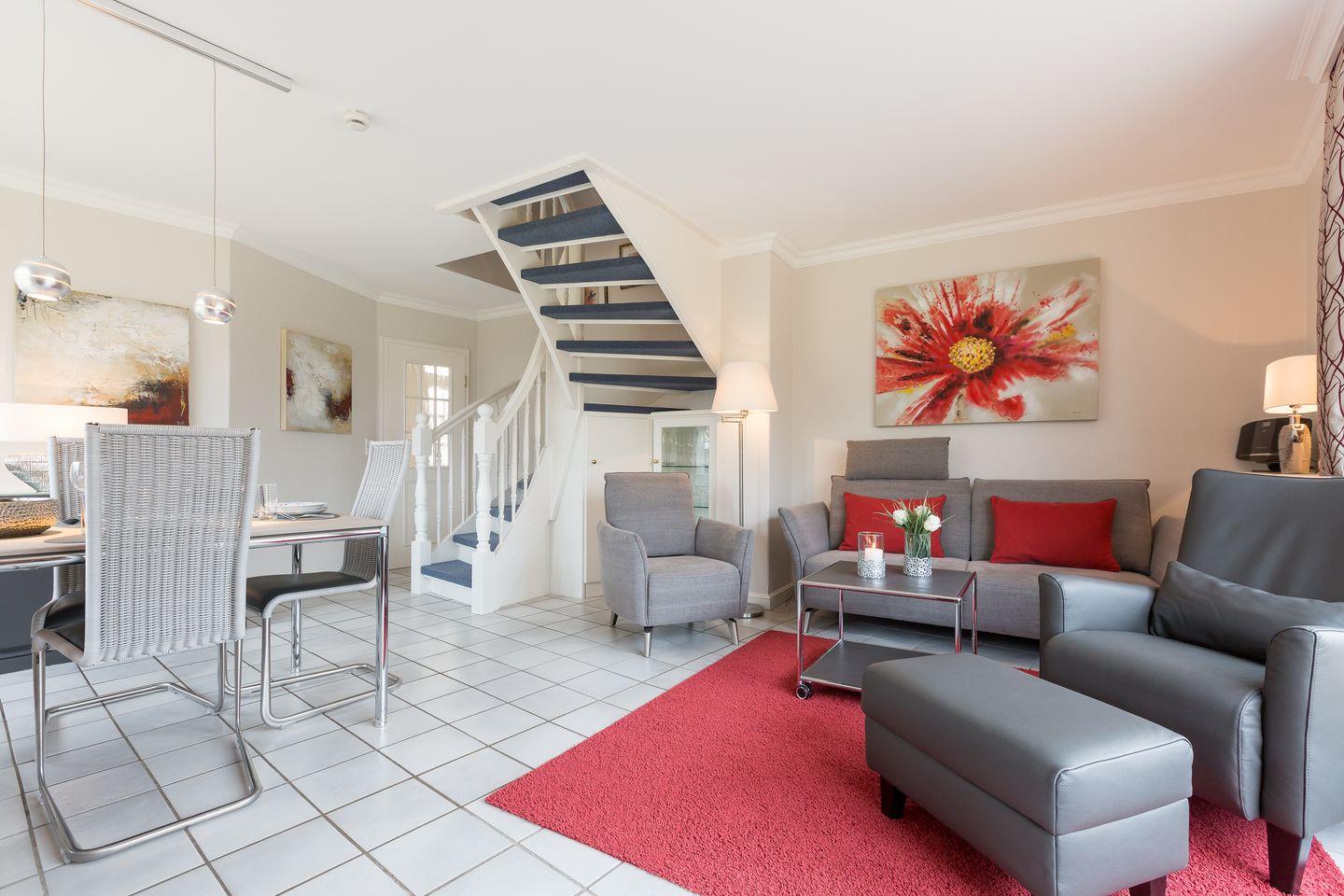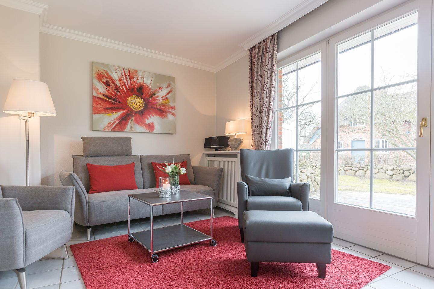Dieses Appartement im Enen-Neest ist ein wahr gewordener Ferientraum auf 85 m². Die Wohnung ist lichtdurchflutet und modern eingerichtet. Vom großzügigen Wohnbereich aus erreichen Sie Ihre möblierte Wohlfühlterrasse mit Blick in den großen Garten, auf der Sie die Sylter Sonnentage genießen können.