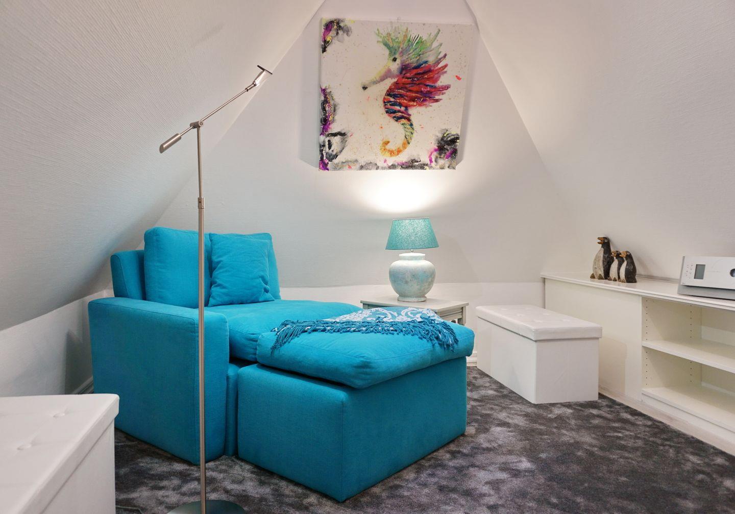 DG: Der offene Dachgeschossbereich ist ein wahres Paradies für Kinder, kuschelig unter dem Dach ist dieser Bereich mit einem Radio/CD und einem TV ausgestattet.