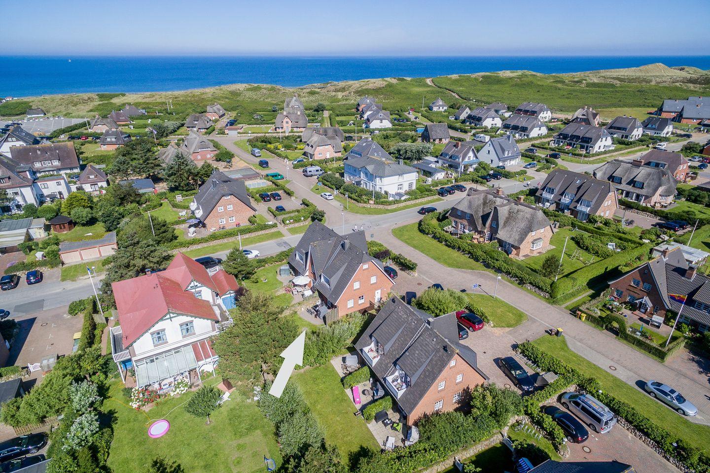 Sie logieren in einer der besten Lagen Wenningstedts. Es sind nur wenige Meter zu Strand und Dorfteich, aber auch Einkaufsgelegenheiten, Frühstücksbrötchen und Restaurants finden sich gleich um die Ecke. Und Ihr eigenes - nicht unterkellertes - Eck-Hausteil liegt ruhig in sonniger Südlage, zu genießen auf Ihrer Terrasse mit kleinem Grundstück. Innen wird Sie sowohl das großzügige Raumangebot als auch die liebevolle, überkomplette Ausstattung erfreuen.