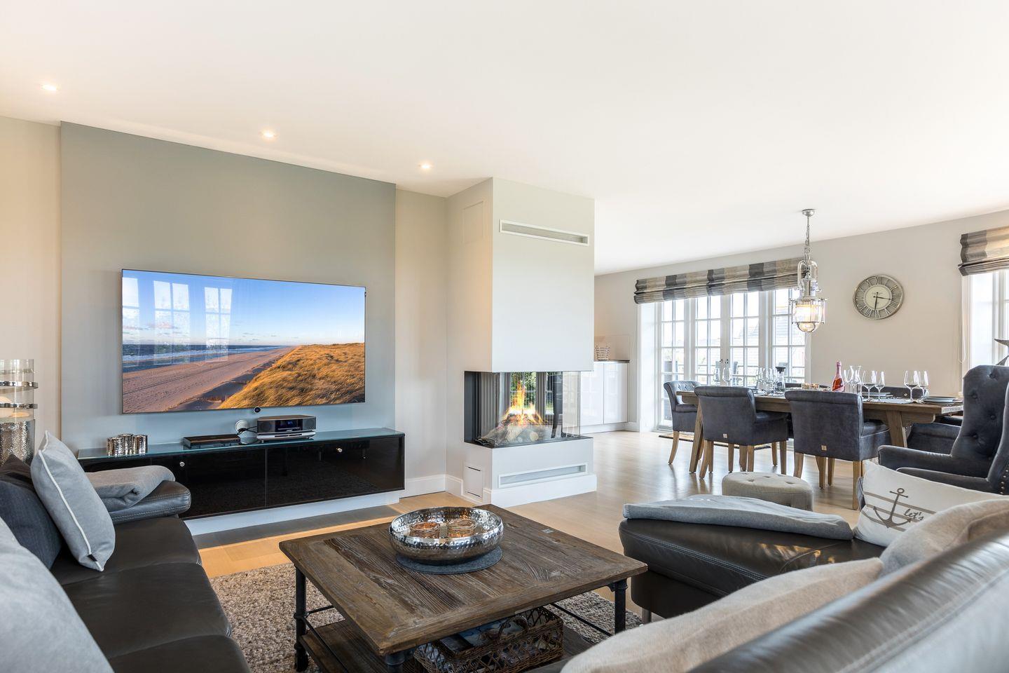 Vom großzügigen Eingangsbereich erreichen Sie die offene Wohnküche mit bodentiefen Fenstern, die die Sylter Sonne in das Zimmer strahlen lassen. Vom Wohnzimmer aus geht es auf die große Terrasse und in den Garten, in dem sich Ihre Kinder im Sommer wohlfühlen können. Die eingebaute Küche lässt jedes Hobbykoch-Herz höherschlagen, denn hier wird es Ihnen an nichts fehlen.[nbsp][nbsp]Der große Esstisch eignet sich perfekt für ein leckeres Familiendinner oder ein ausgiebiges Urlaubs-Frühstück. Auf dem gemütlichen Ecksofa können Sie die Wärme aus dem großen Gaskamin genießen und den stressigen Alltag hinter sich lassen. Das gesamte Haus ist top-modern eingerichtet und bietet Ihnen allen Komfort, den Sie in Ihrer schönsten Zeit des Jahres brauchen.