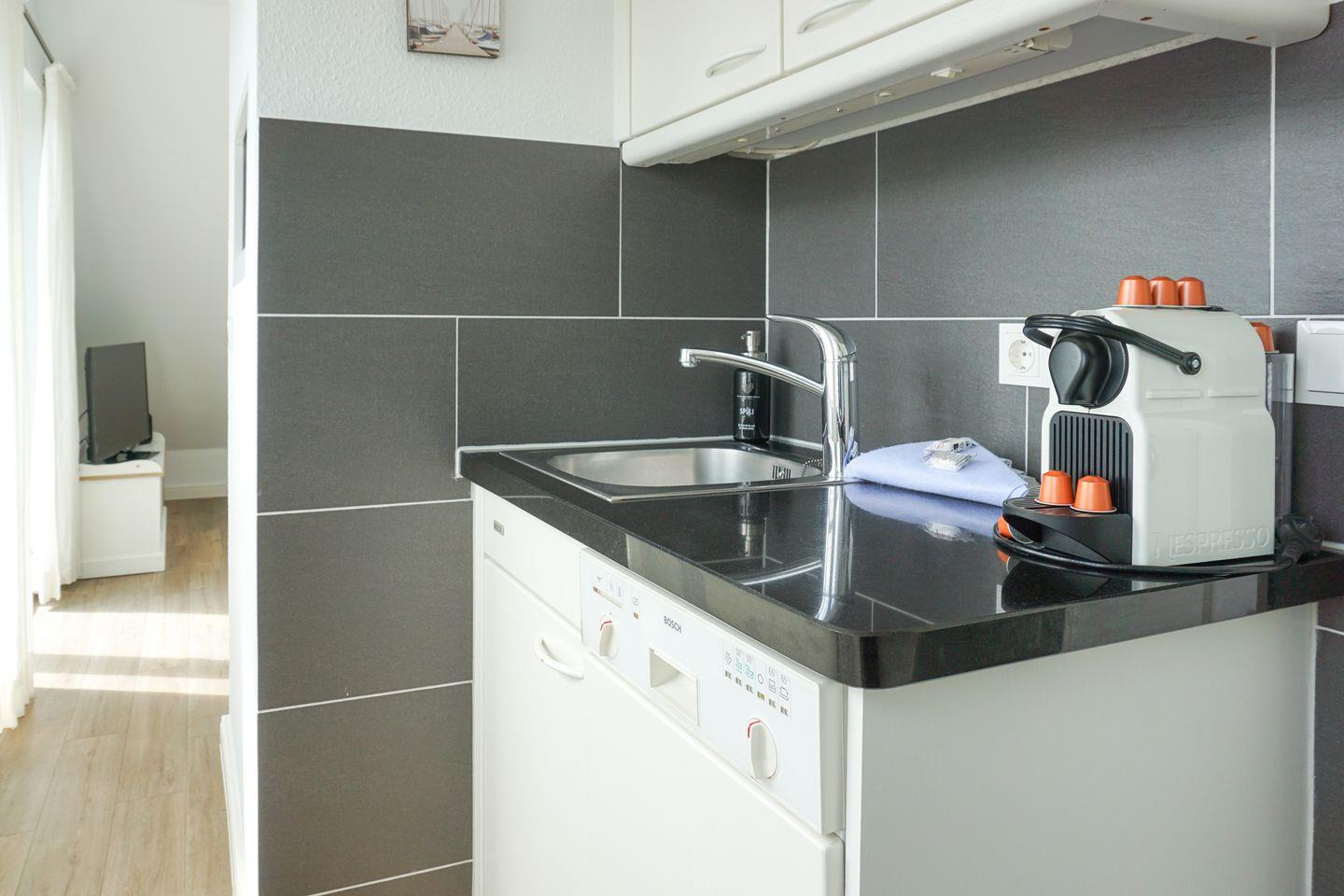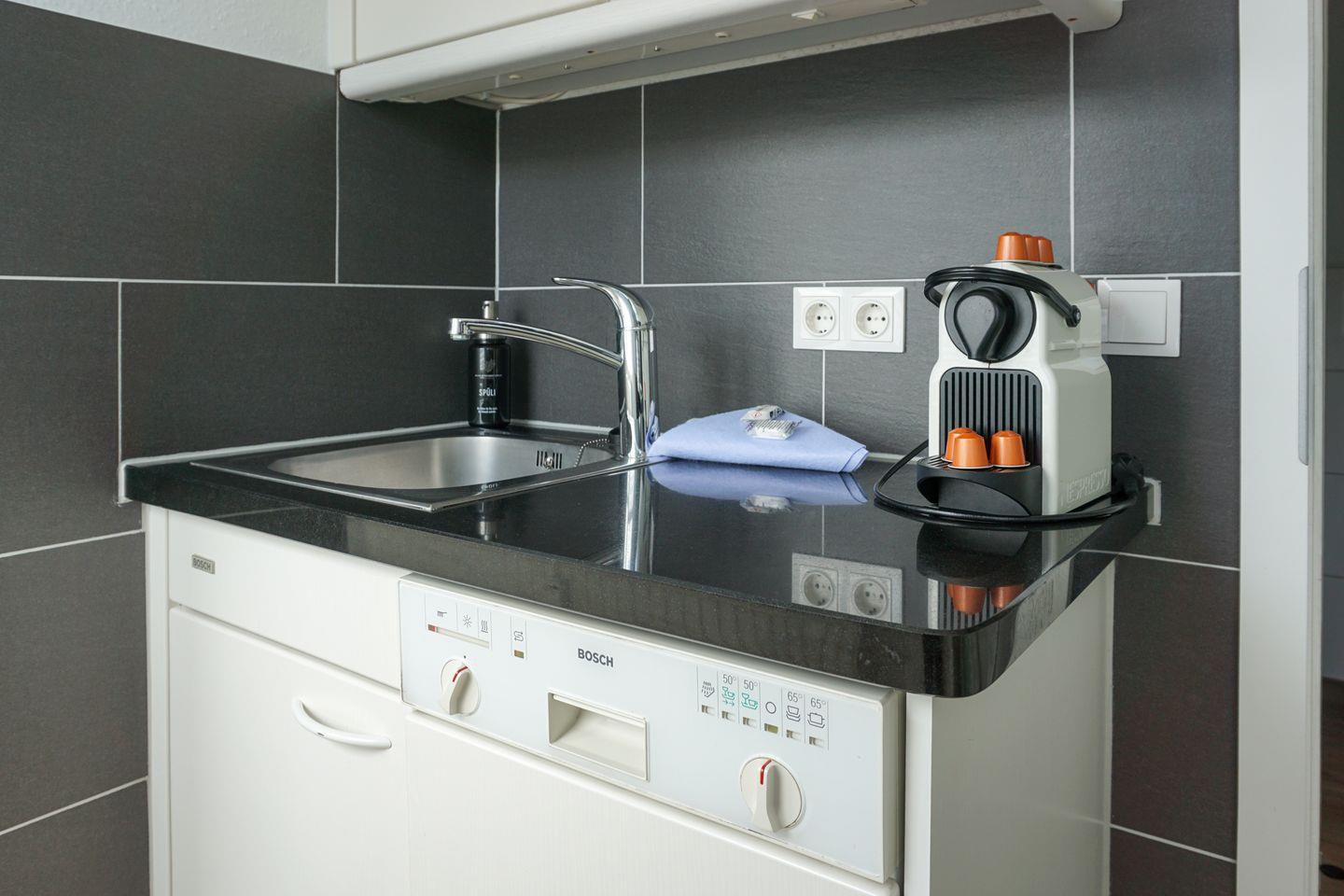 Küche mit Backofen mit kombinierter Mikrowelle, Geschirrspüler, Nespresso Kaffeemaschine,