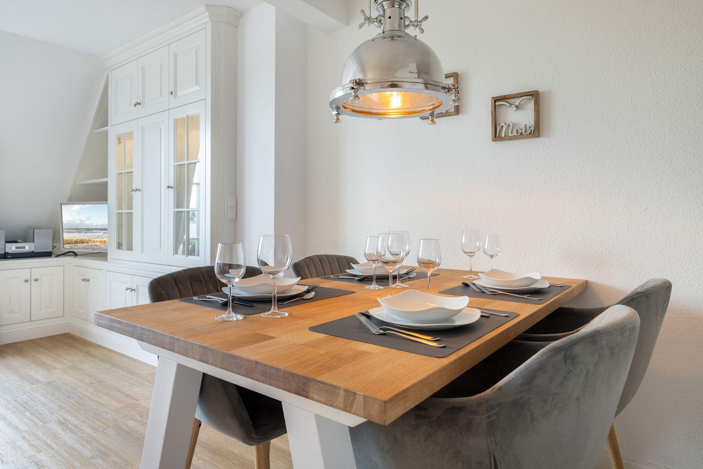 Willkommen in der Ferienwohnung "Meerzeit" in Wenningstedt auf Sylt! Diese großzügige und moderne Unterkunft bietet einen komfortablen Rückzugsort für bis zu drei Personen. Genießen Sie die hochwertige Ausstattung mit einer offenen Küche, einem gemütlichen Wohnbereich und einem einladenden Balkon. In nur 270 Metern erreichen Sie den Strand, wo Sie Sonne und Meer genießen können. Haustiere sind willkommen. Buchen Sie jetzt Ihren perfekten Aufenthalt an der Nordsee!