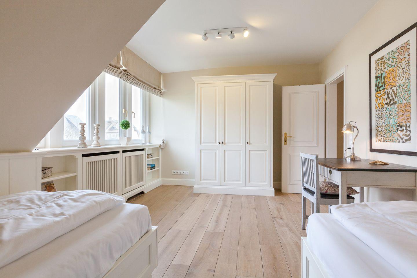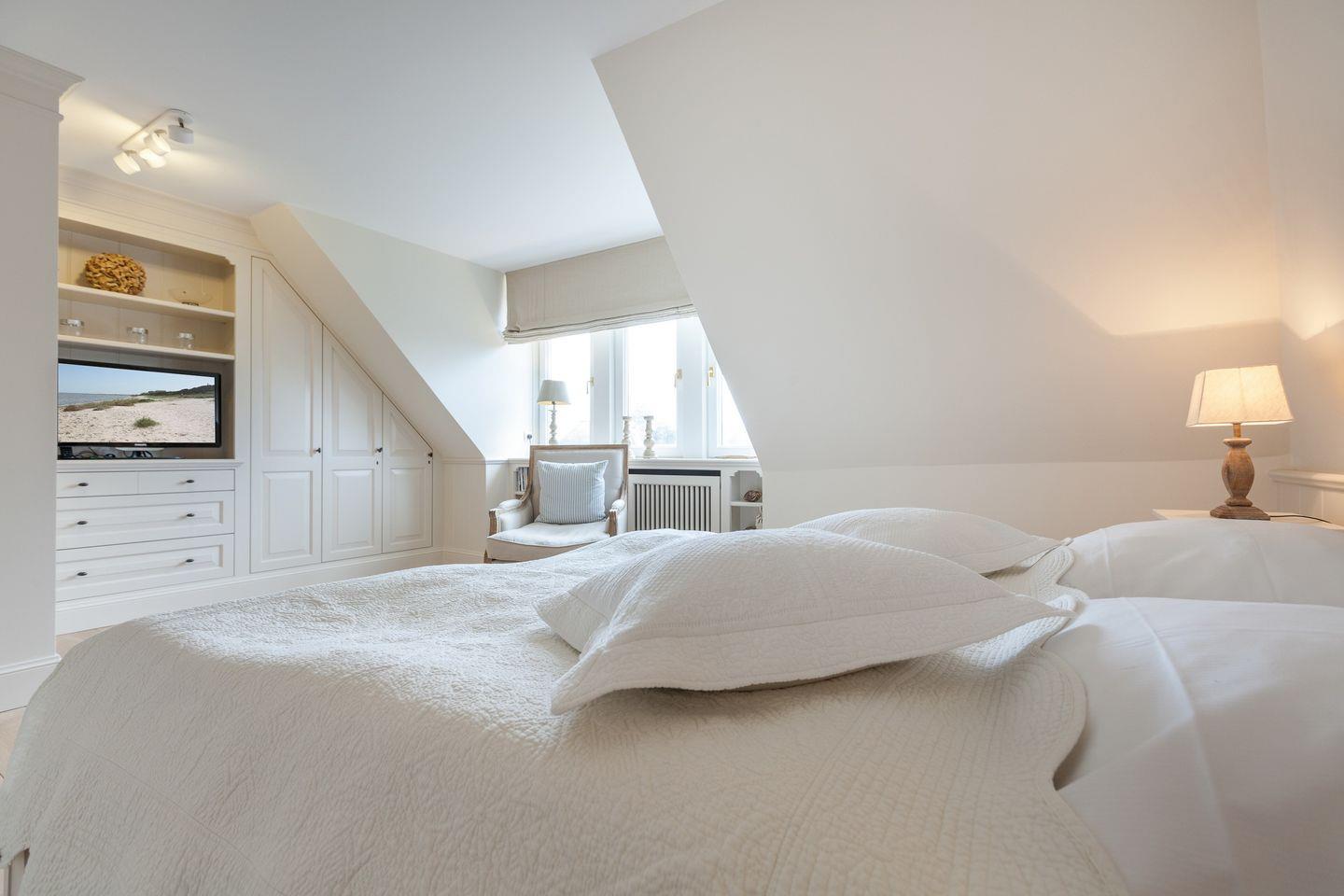 OG: Großzügiger Masterbedroom mit Doppelbett (ca. 2x2m) und Flat-TV. Bad mit WC und Badewanne/integrierte Duschmöglichkeit. Ein weiteres Schlafzimmer mit getrennten Betten (je 0,9x2m) empfängt Sie ebenfalls im Obergeschoss.