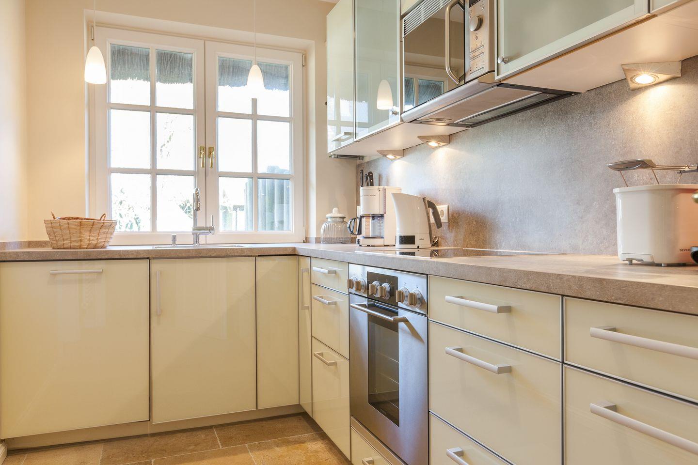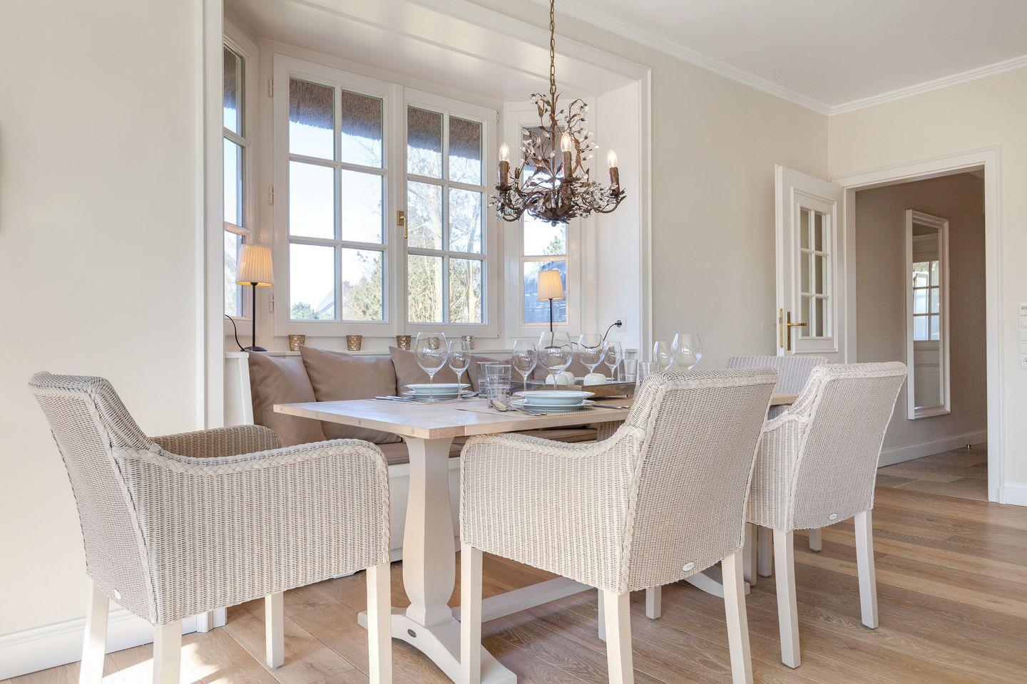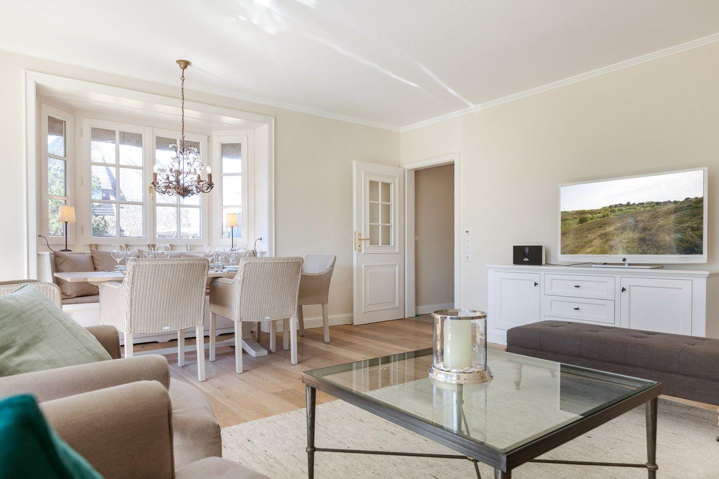 EG: Großzügiger, lichtdurchfluteter und hochwertig gestalteter Wohnraum mit gemütlicher Sitzecke. Loewe-Flat-TV, Bose-Soundsystem und WLAN. Schönes Gäste-WC mit Dusche. Separate Küche mit Microwelle, Backofen, Kaffeefiltermaschine und Geschirrspüler. Sehr schöne Süd-Terrasse mit Gartenmöbeln und Strandkorb (ca. von April-Oktober) mit weitläufigem, hübsch eingewachsenen Grundstück.