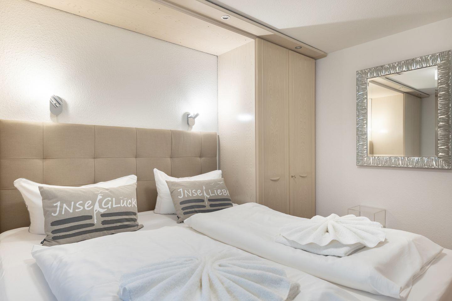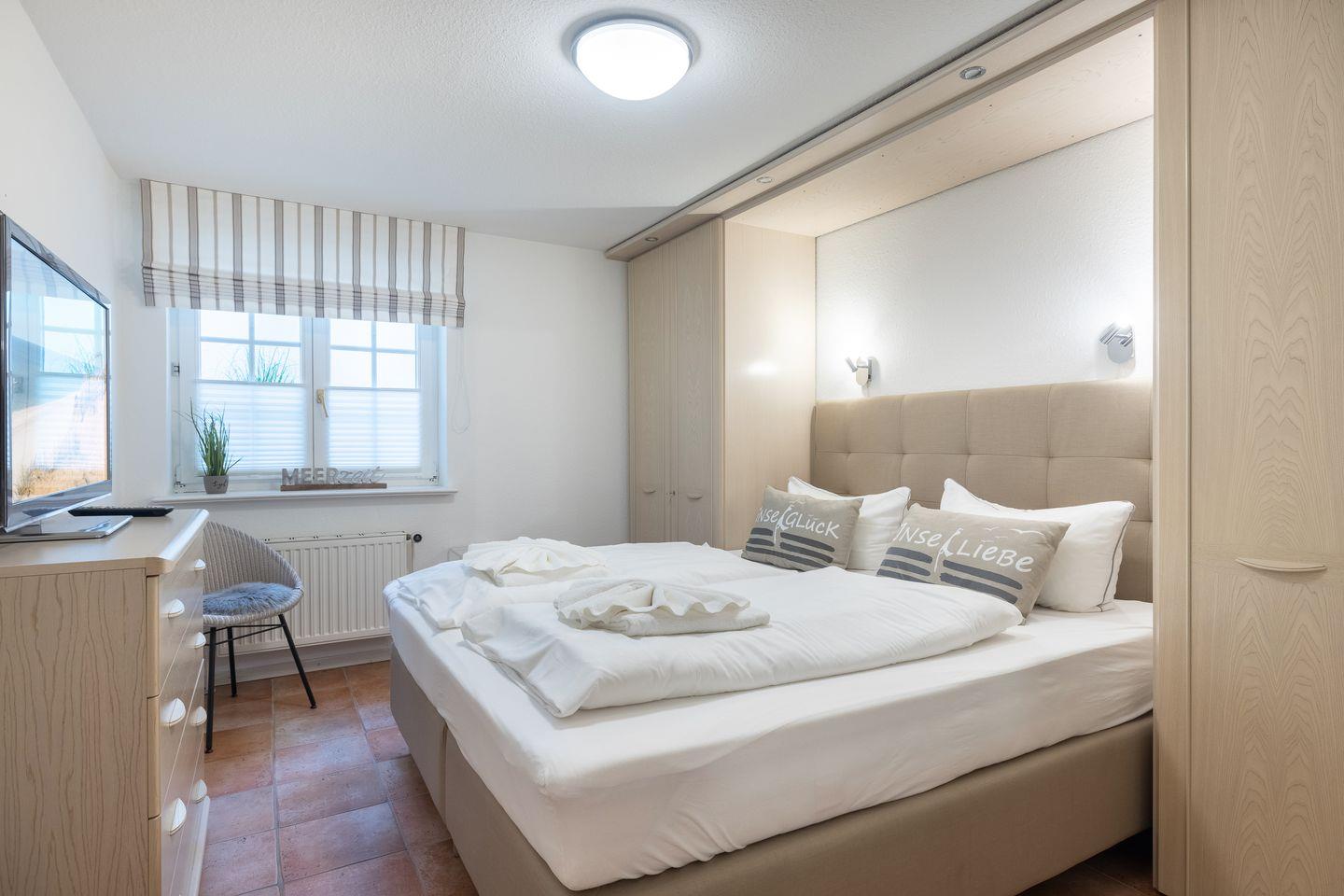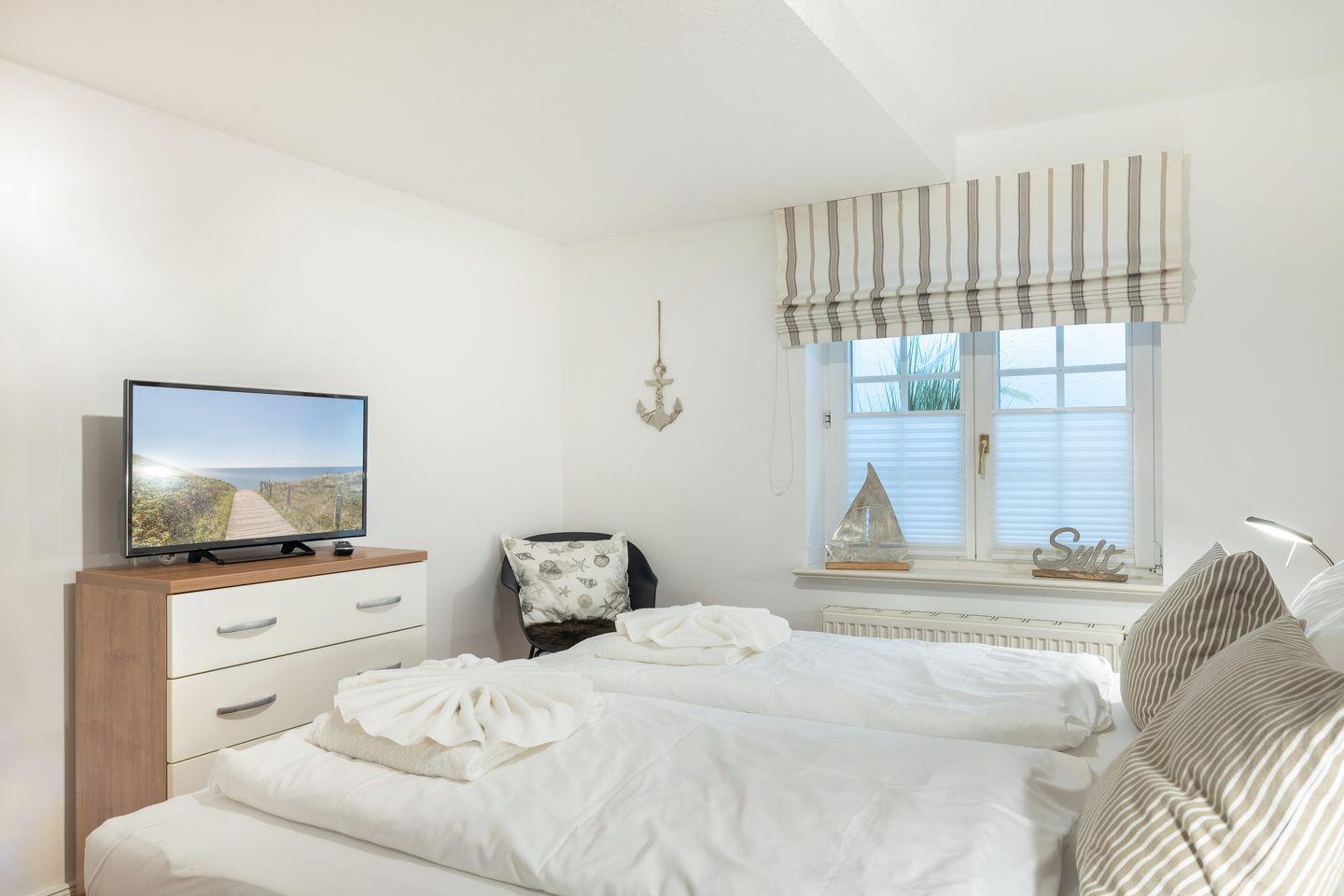 UG: 1 Raum mit Doppelbett (Boxspringbett) (180x200cm) sowie 1 Raum mit Doppelbett (180x200cm). Dusche/WC.