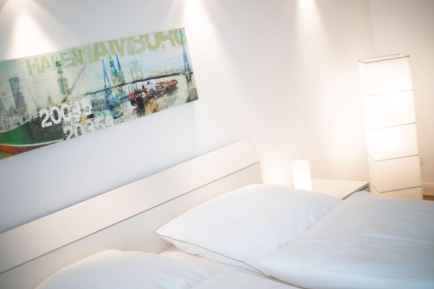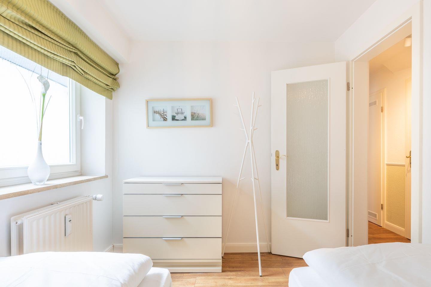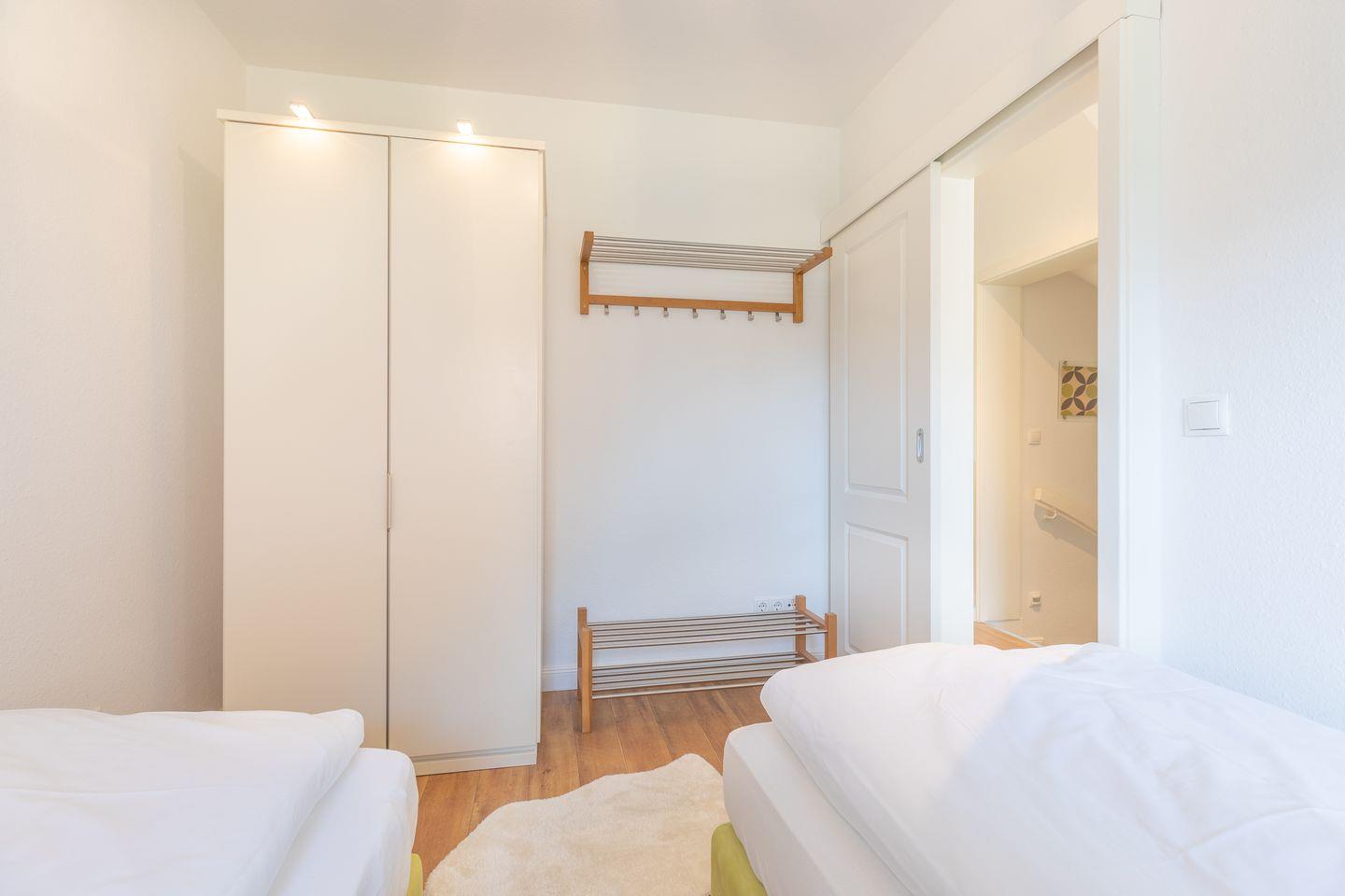 Eine Treppe tiefer erwartet Sie neben den beiden anderen Schlafzimmer – eins davon mit einem Doppelbett, eins