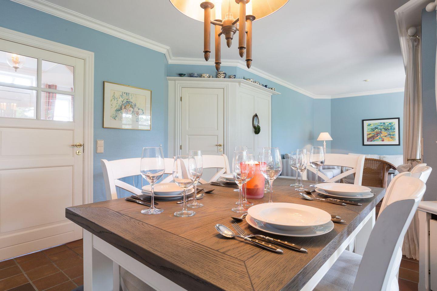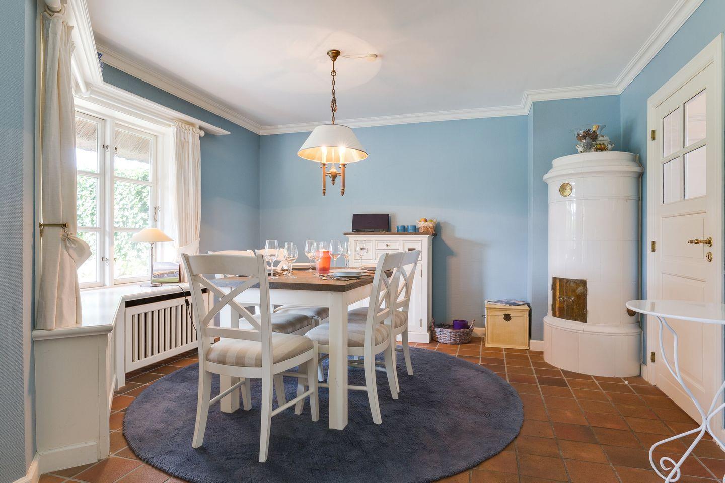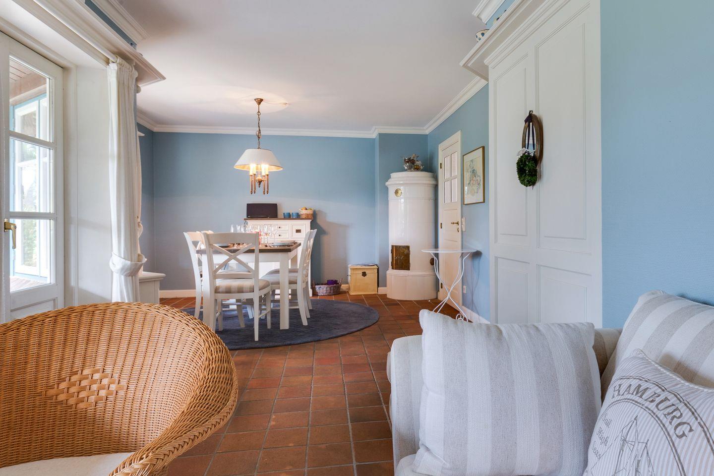 Freuen Sie sich auf den schönen und lichtdurchfluteten Wohnbereich mit TV, WLAN und iPod Dock. Ihr gemütlicher Essbereich lässt Sie in den sehr schön angelegten Garten blicken. Ein antiker Kachelofen sorgt für Wärme und Behaglichkeit.