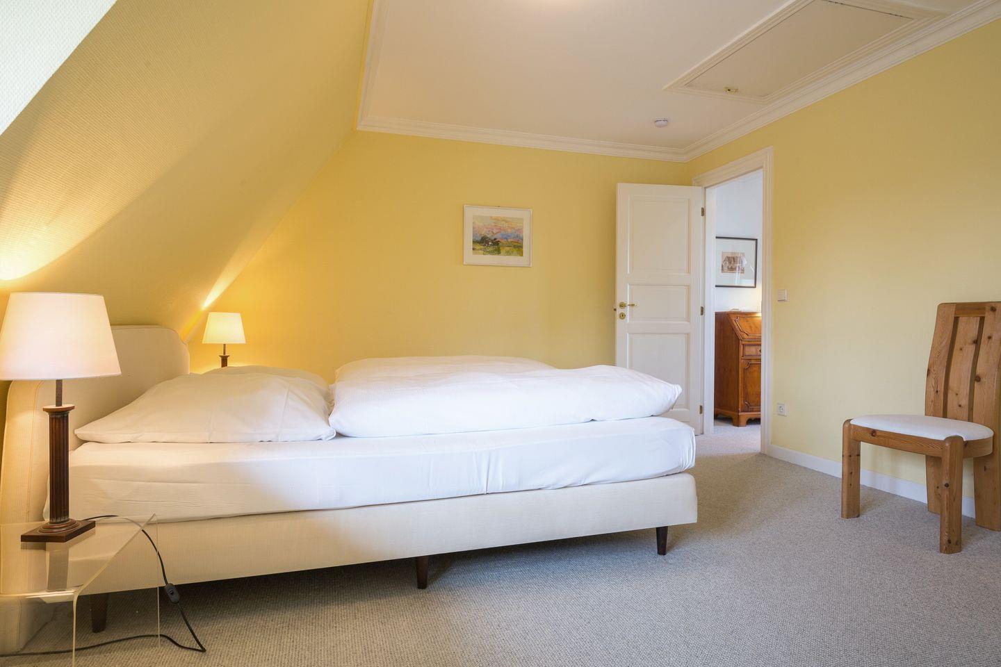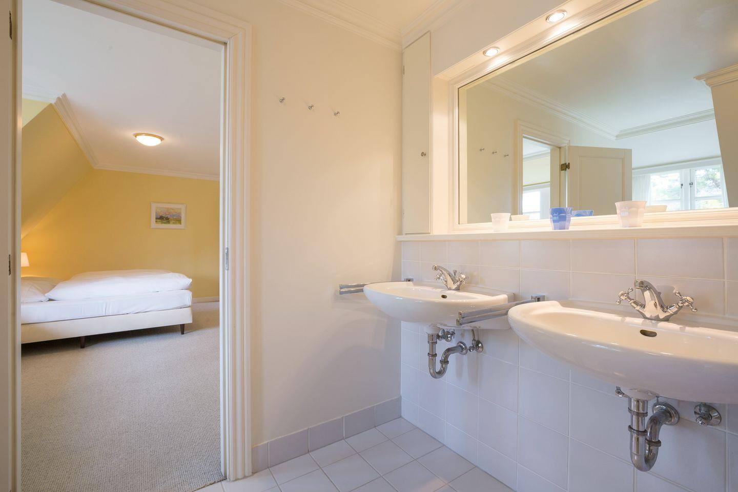 Im Obergeschoss erwartet Sie Ihr Masterbedroom mit Doppelbett sowie ein großes und helles Bad mit Dusche, Badewanne und Doppelwaschtisch.